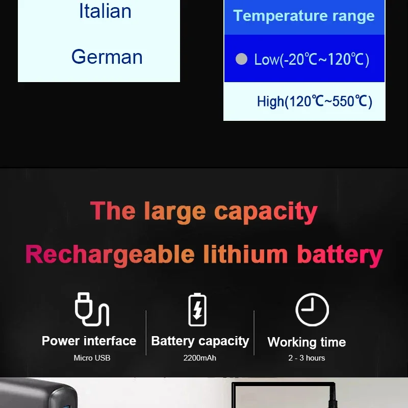 [Medición en tiempo real]:con -20℃ a +550℃/-40℉ a +1022℉ rangos de medición, soporte℃ y℉ interruptor.