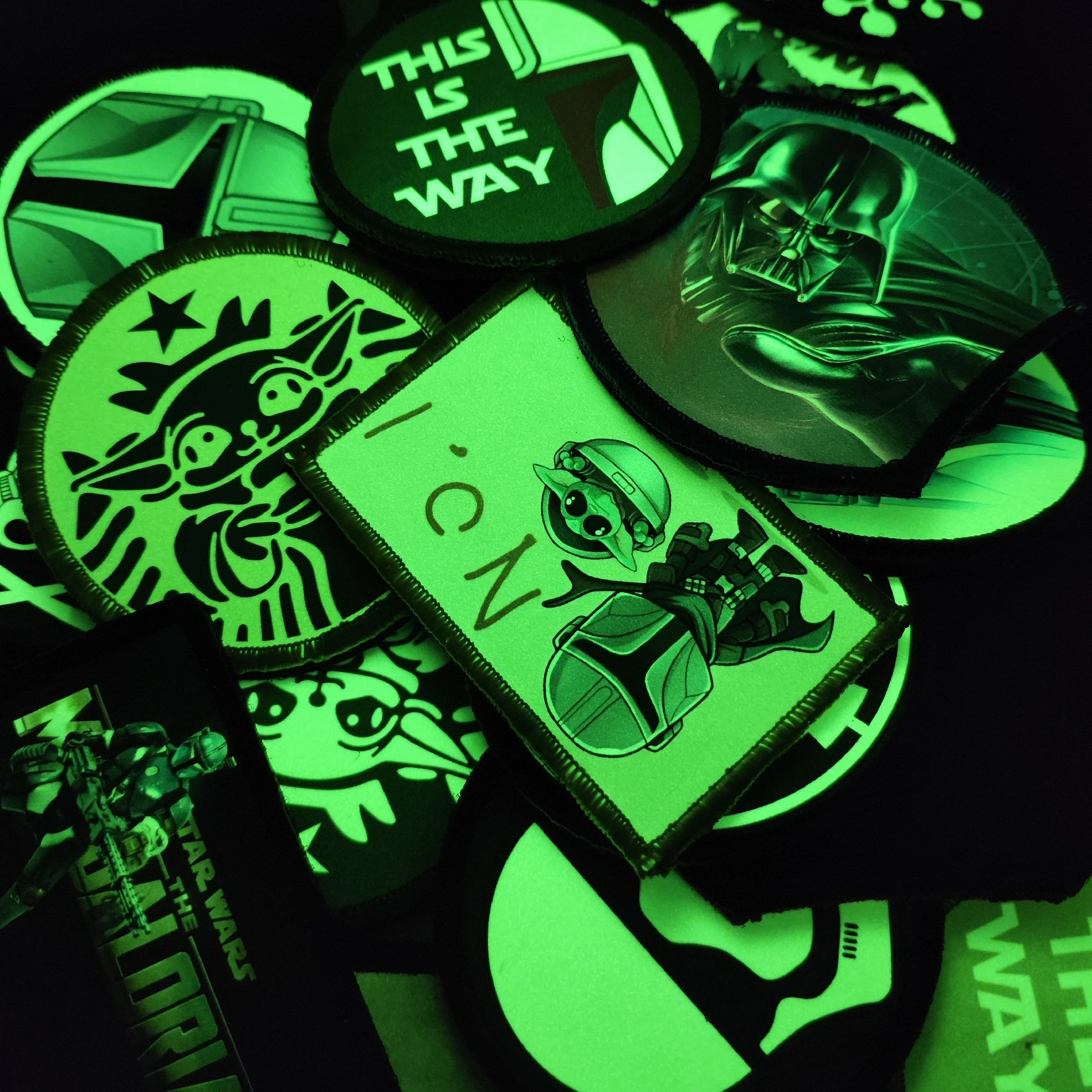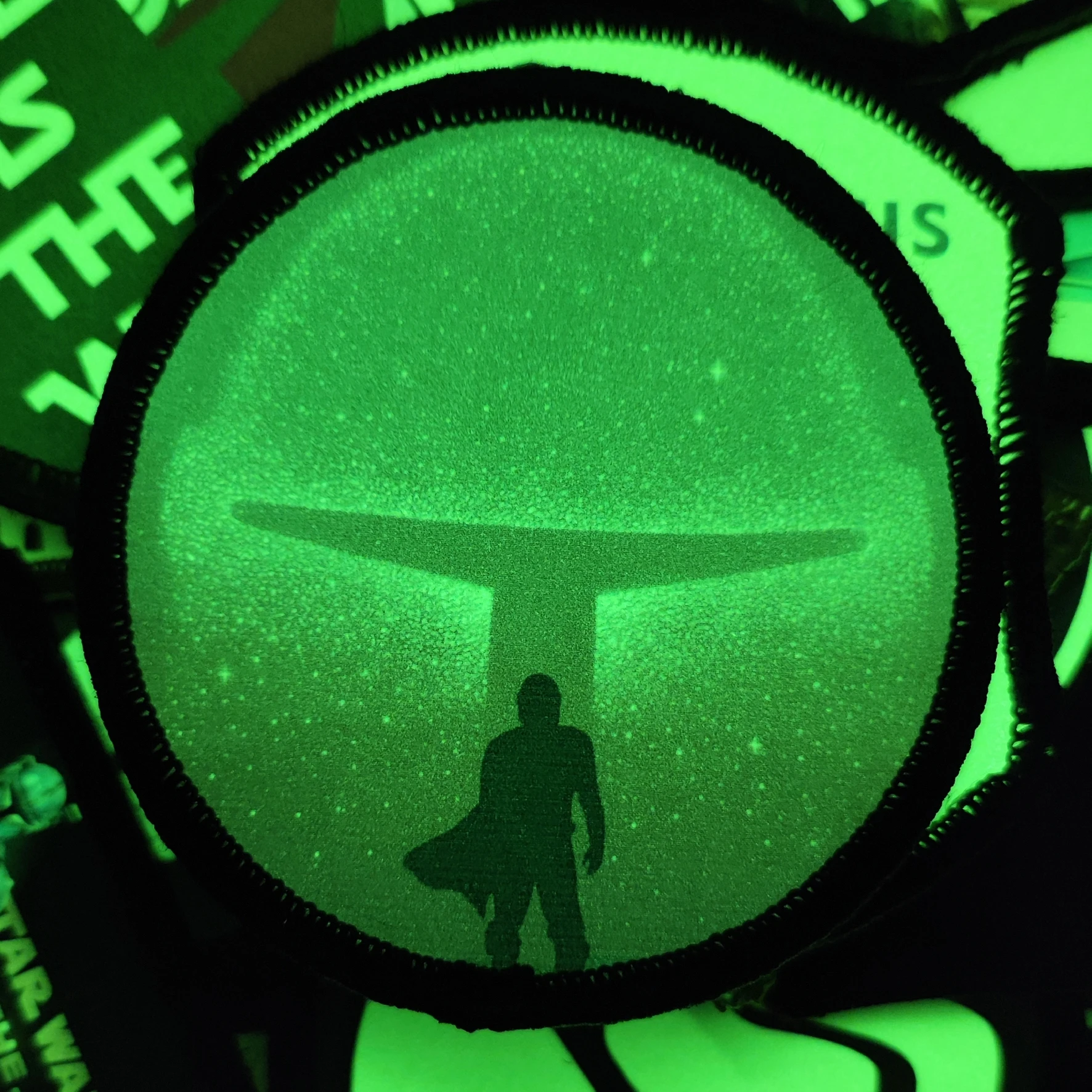 Esta es el camino, casco Mandaloy con estampado luminoso, gancho táctico y bucle, insignia para ropa, mochila, parche de nailon para nieve