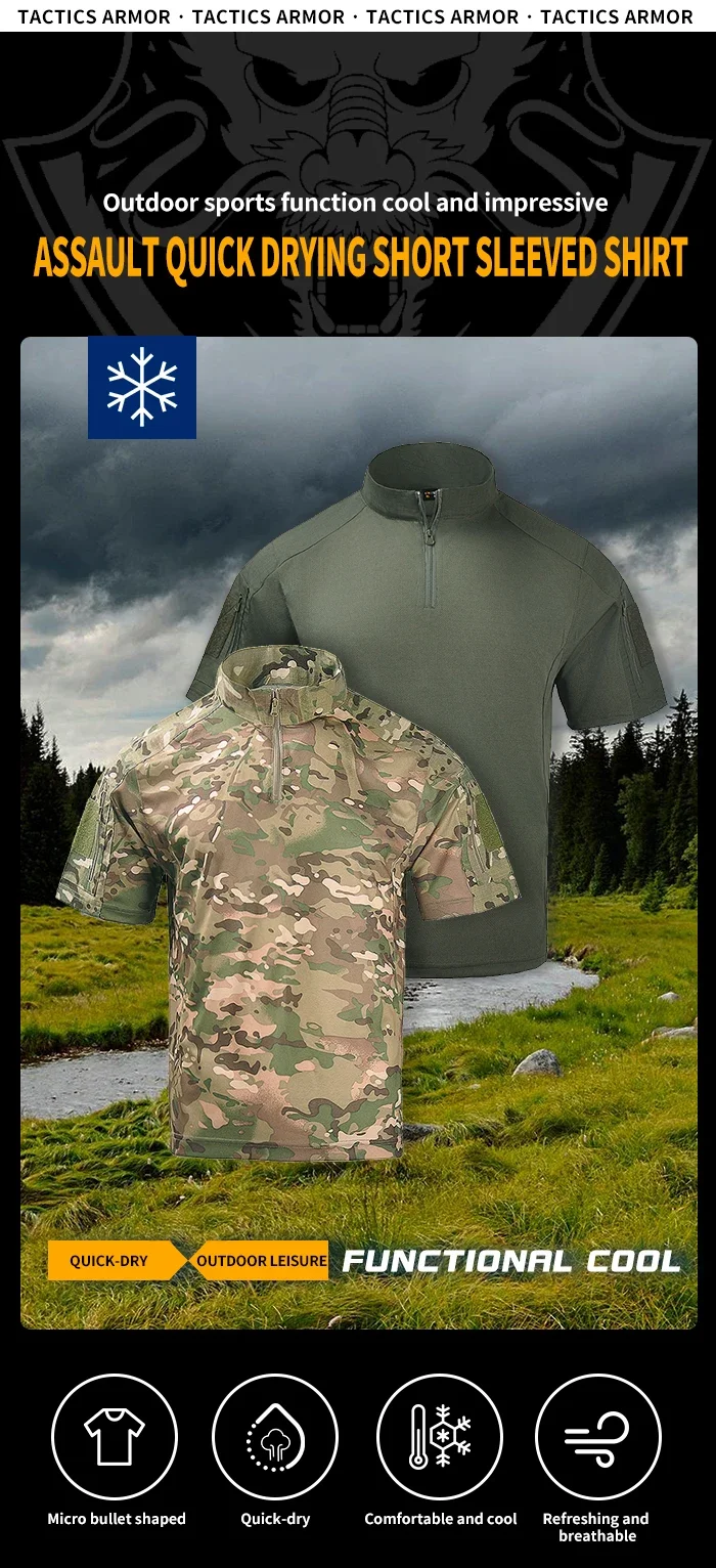 Camisa de carga táctica para hombre, camisetas deportivas de manga corta para correr, camiseta informal de secado rápido, camisas de combate de algodón, ropa para hombre