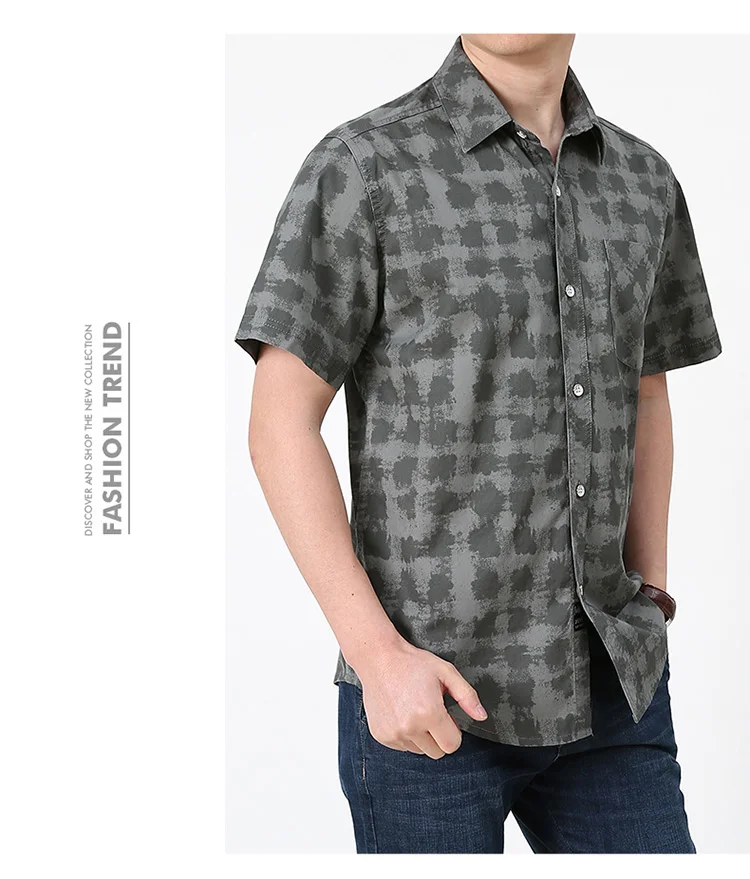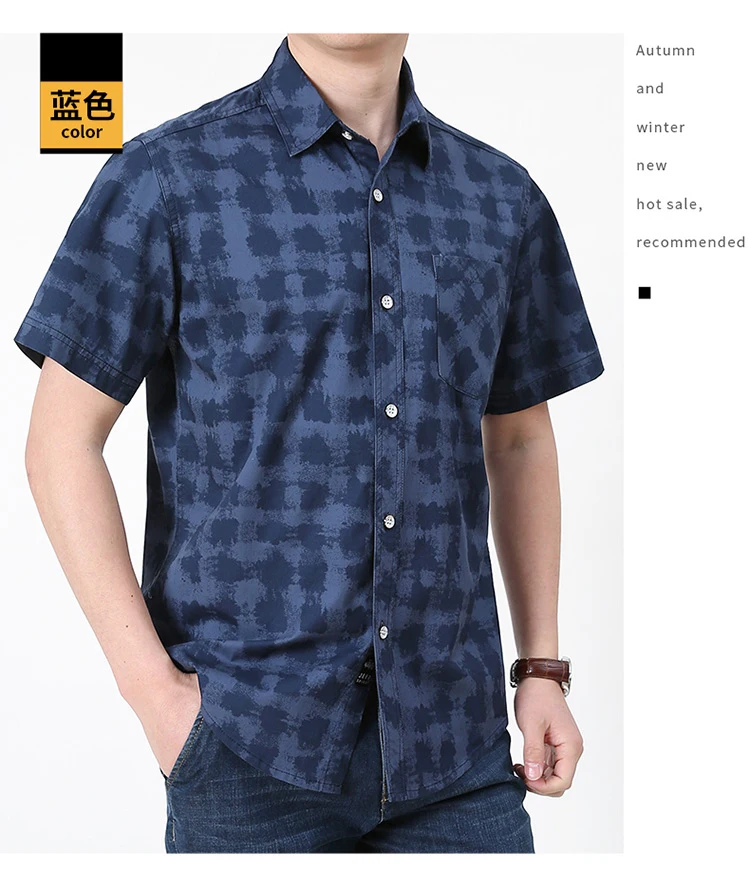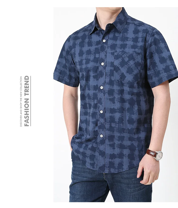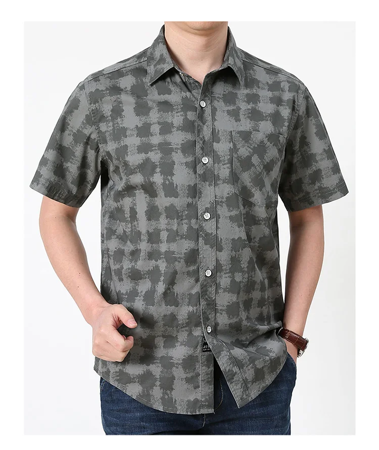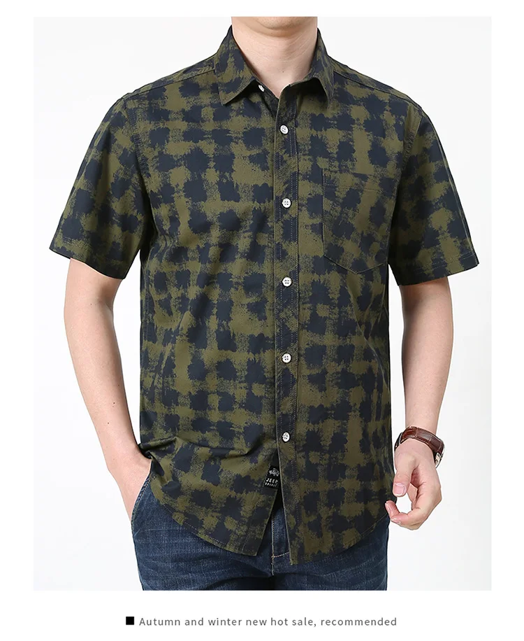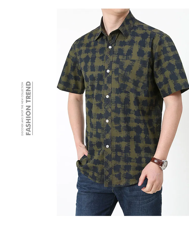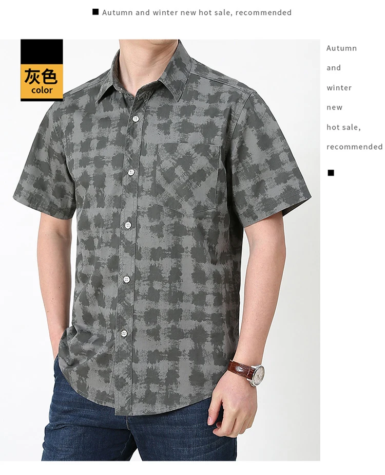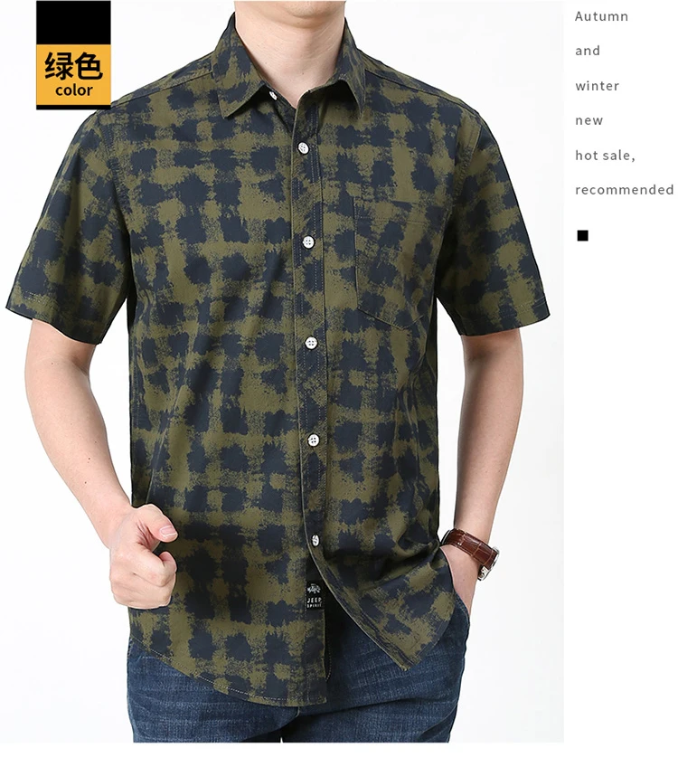 Camisa a cuadros de manga corta para hombre, camisa informal de gran tamaño de algodón puro inglés, ropa de ocio, 5XL, A2F819