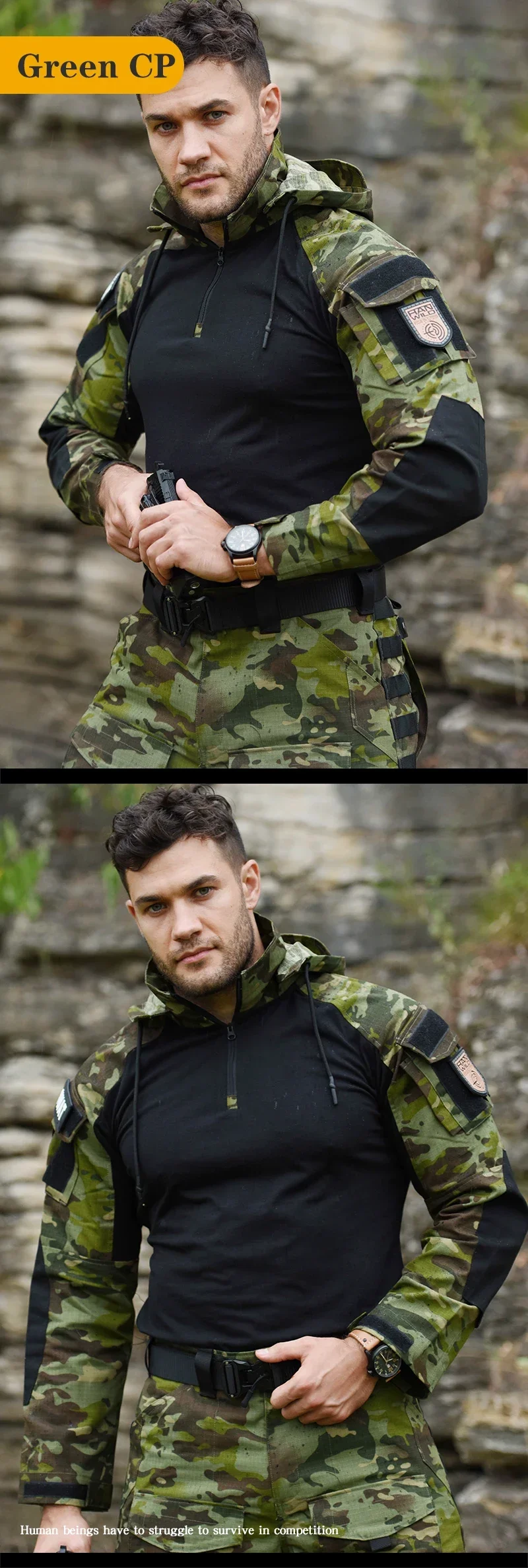 Camisa de escalada de combate para hombre, camisas tácticas para senderismo al aire libre, camisa de caza de manga larga de camuflaje CP, camisetas deportivas de algodón para caza
