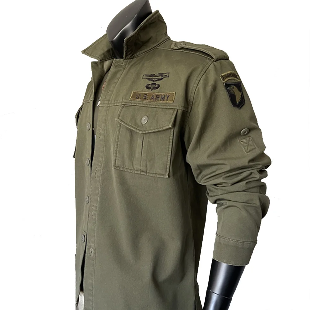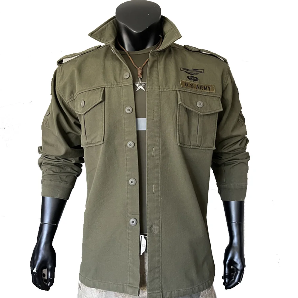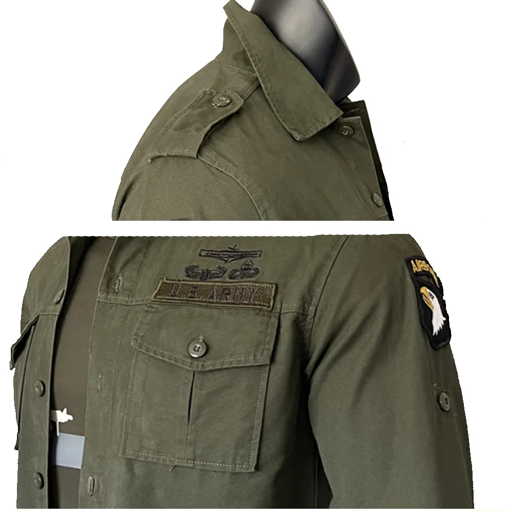 Camisa de herramientas de división aerotransportada de la Segunda Guerra Mundial, camisa verde de manga larga, chaqueta de entrenamiento informal, camisa Vintage para hombre