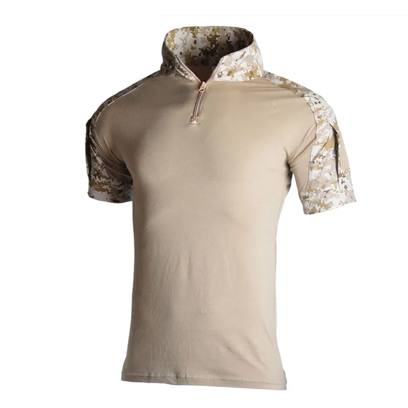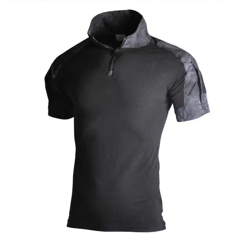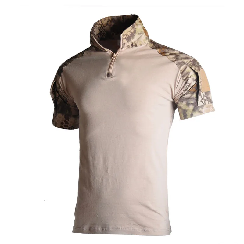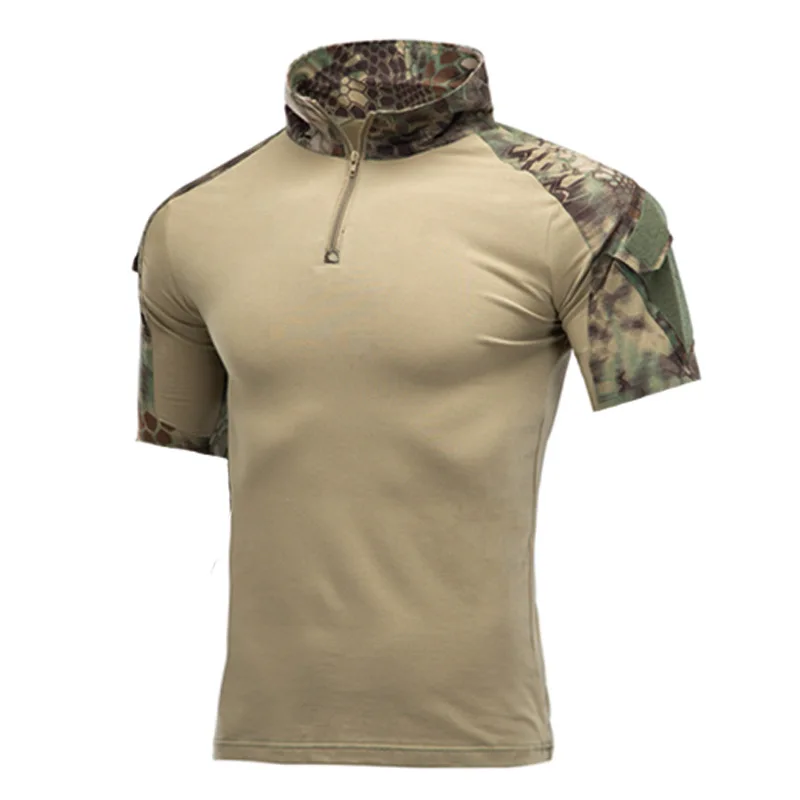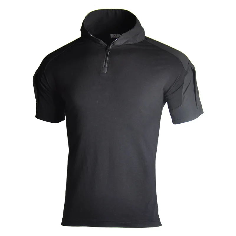 Camisa de manga corta de combate para hombre al aire libre, camisas tácticas de algodón Ripstop con cremallera 1/4, camiseta de camuflaje del ejército de verano, ropa para hombre
