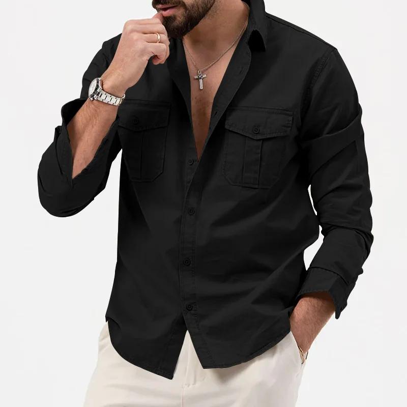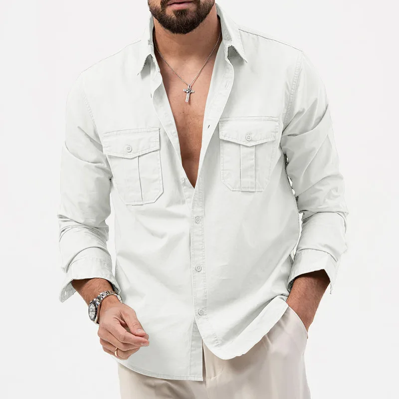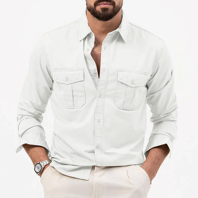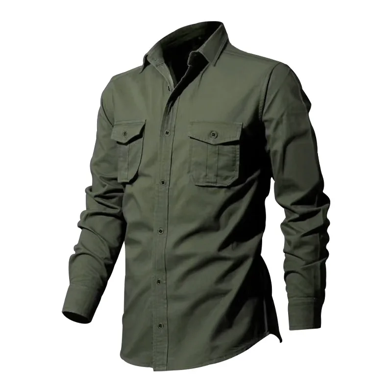 Camisa de manga larga para hombre, blusa informal de Negocios Sociales, Primavera, Vintage, multibolsillo, ajustada, Color sólido, Verano