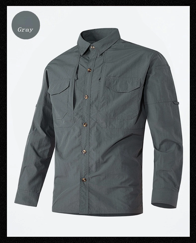 Camisa de manga larga de secado rápido para hombre, camisa informal de moda con cuello tipo Polo, camisa de botonadura única, Top táctico militar para primavera y otoño
