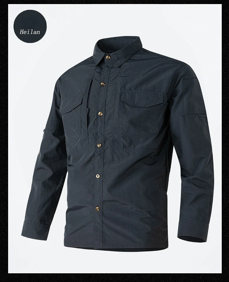 Spring Autumn Men's Quick Drying Long Sleeve Shirt Casual Fashion Polo Collar Single breasted Shirt Men's Military Tactical Top