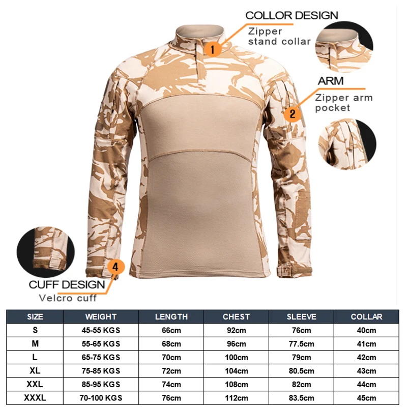 Camisa táctica, camisa de combate, ropa de hombre, camisa militar de elasticidad, camiseta de camuflaje, camisa larga del ejército Multicam, ropa de caza