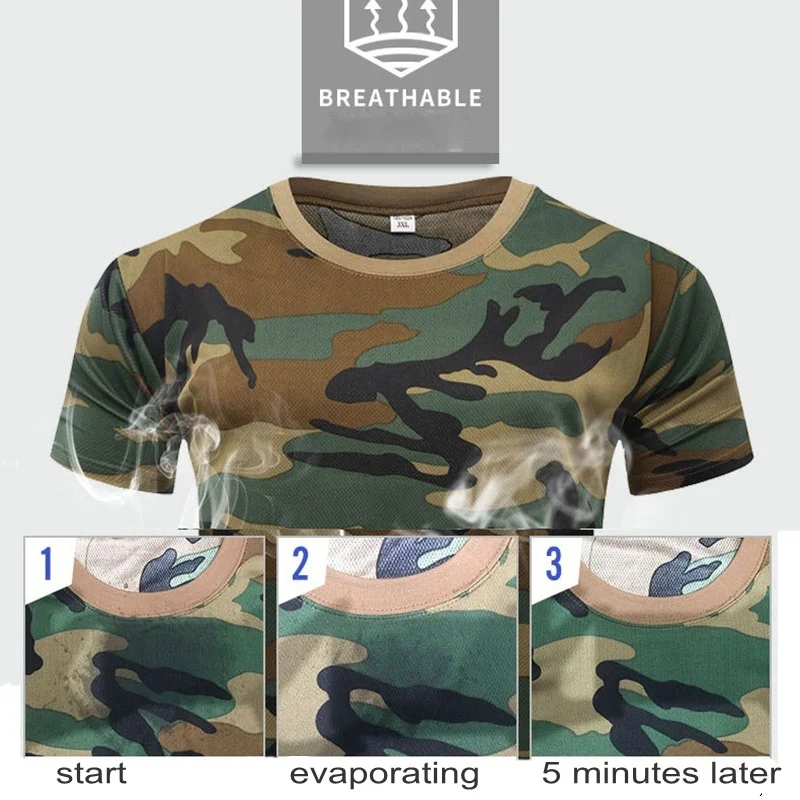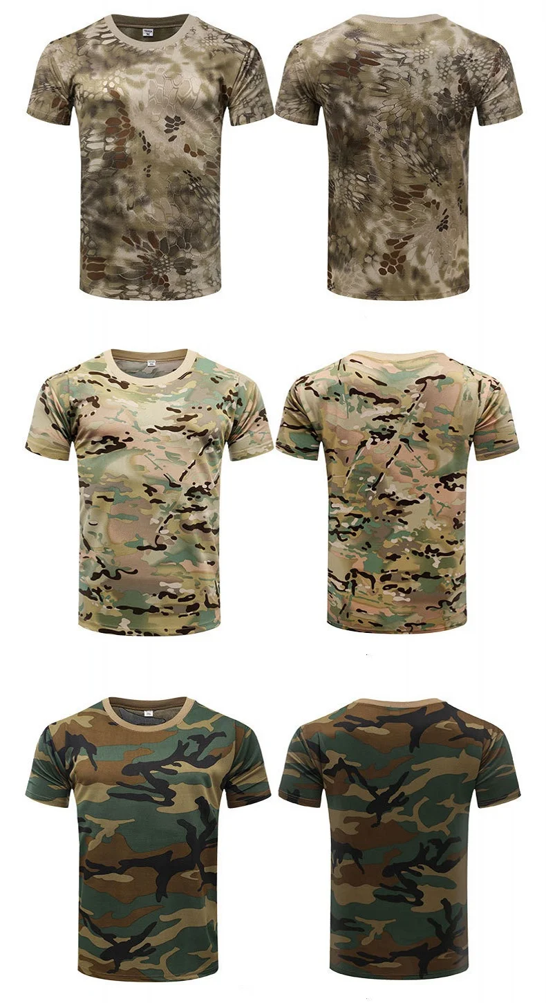 Camisa táctica de camuflaje de manga corta para hombre, camiseta de combate de secado rápido para acampar al aire libre, ropa de caza, camisas de senderismo