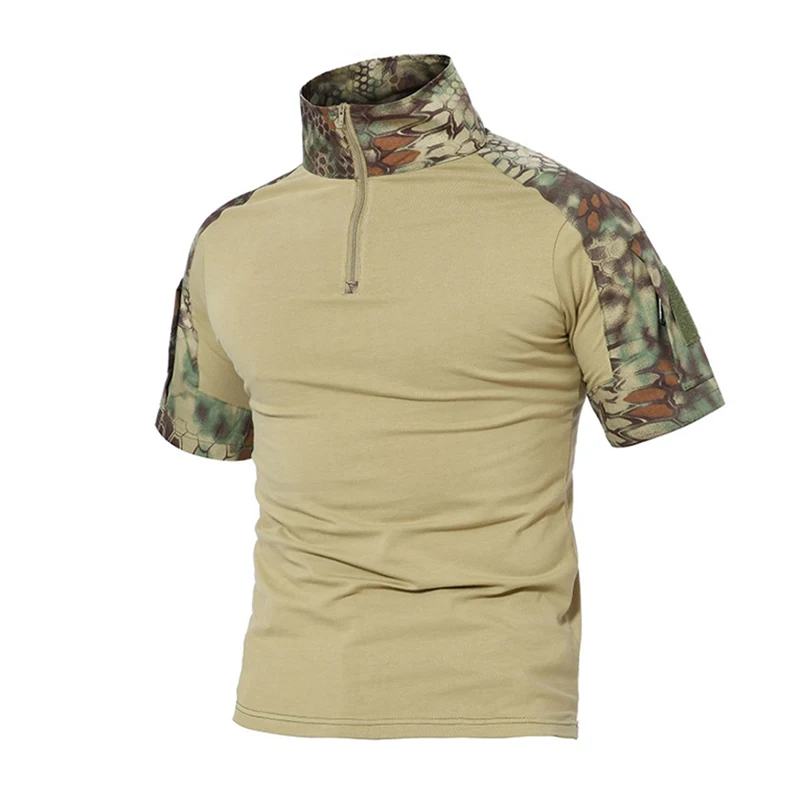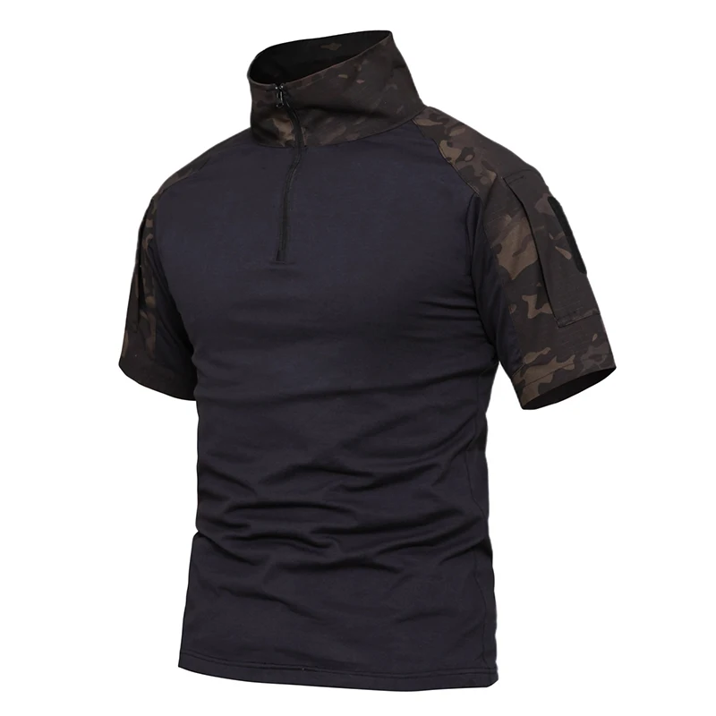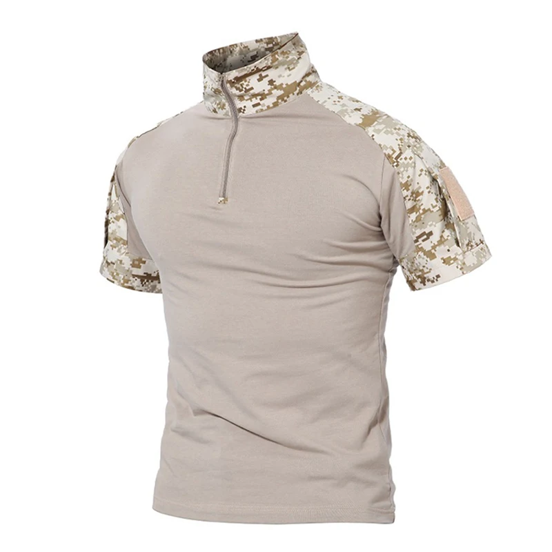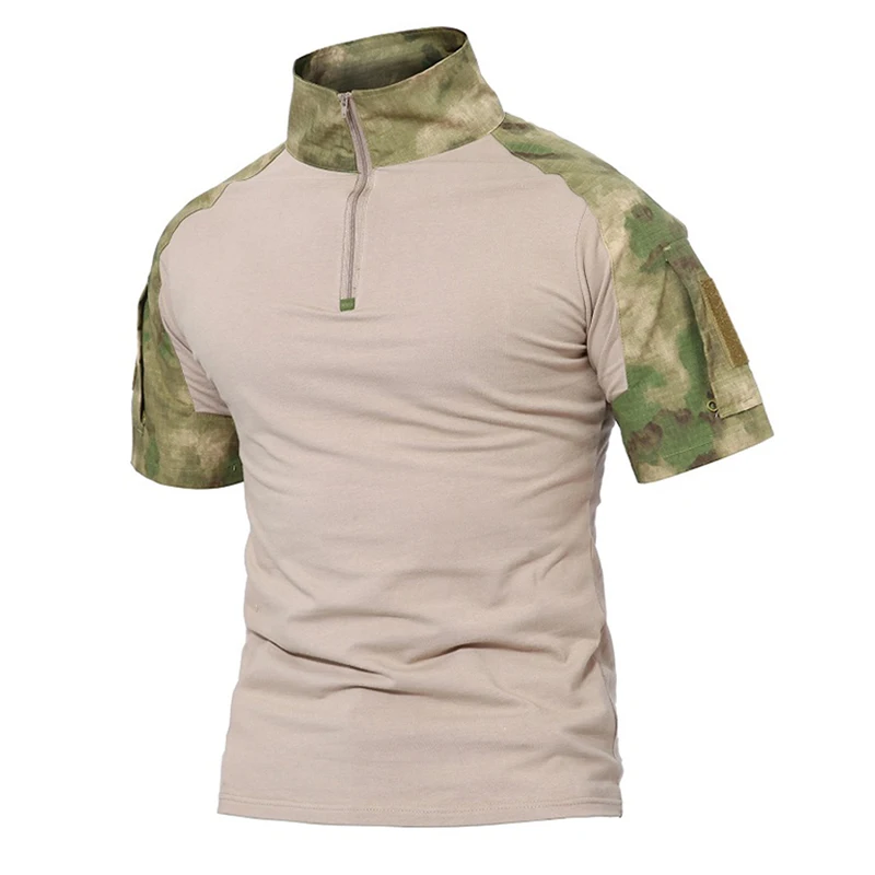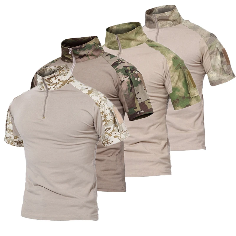Camisa táctica de manga corta para hombre, camisa de combate con cremallera, algodón, senderismo, Camuflaje, Airsoft, CP, escalada, Verano