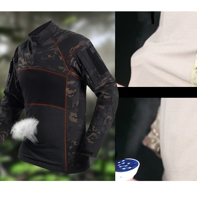 Camisa táctica de manga larga superior camuflaje Airsoft deportes al aire libre combate camisa negro MC camuflaje