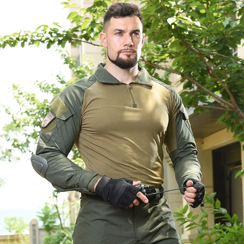 Camisas de camuflaje táctico para hombre, camisa deportiva de combate Airsoft, senderismo, manga larga, escalada al aire libre, asalto, caza, ropa de entrenamiento