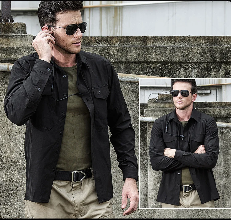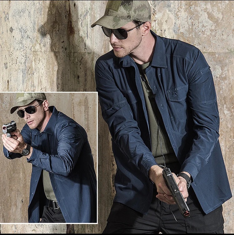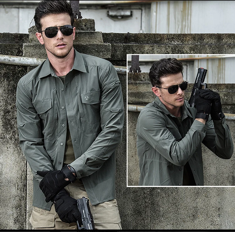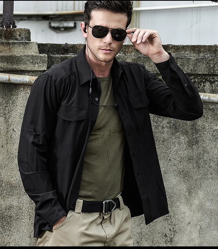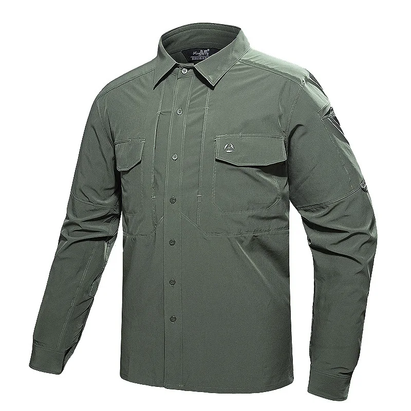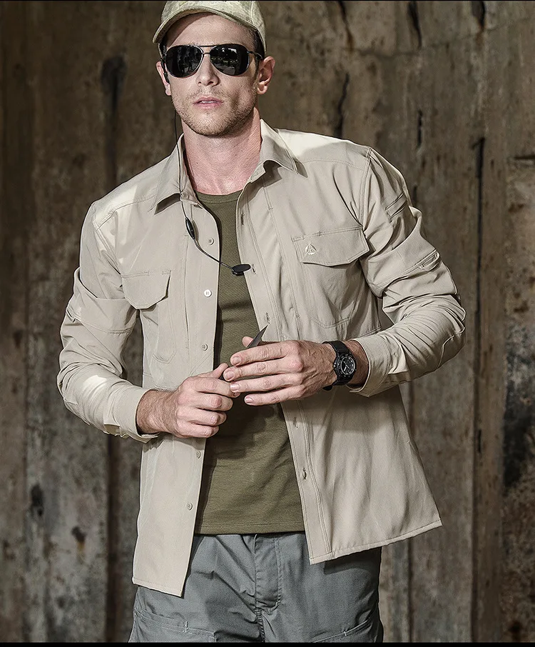 Camisas casuales de manga larga para hombre, camisa masculina con múltiples bolsillos, táctica militar transpirable, ropa de secado rápido, primavera y otoño