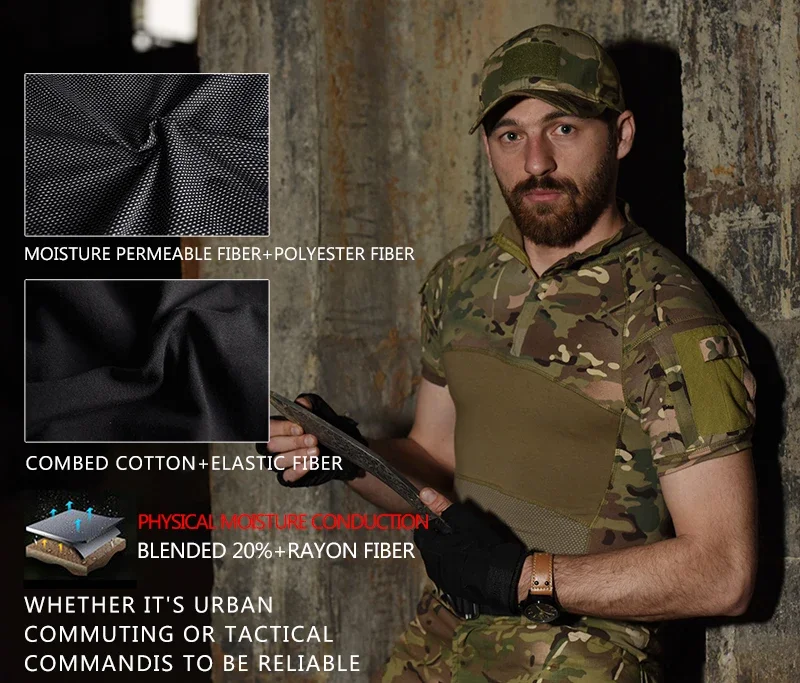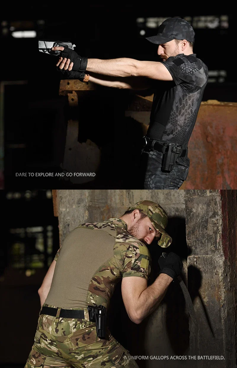 Camisas de combate al aire libre, camiseta táctica Airsoft, Camiseta corta de algodón de camuflaje, camisas de entrenamiento, ropa de caza de Paintball