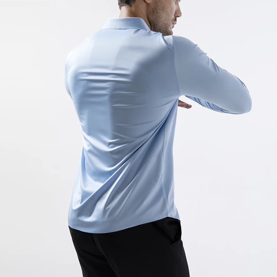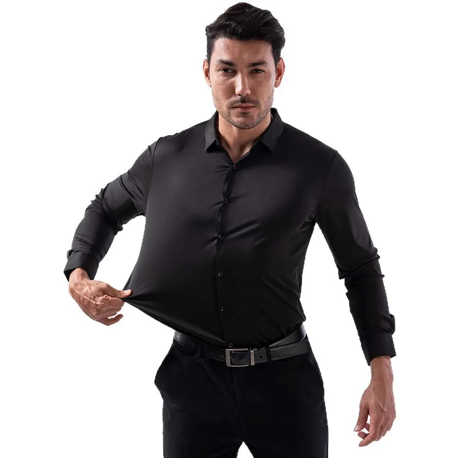 Camisas elásticas de manga larga para hombre, ropa de negocios sin planchar, ropa de trabajo de lujo, sin arrugas, camisa con cuello levantado, camisa informal sólida