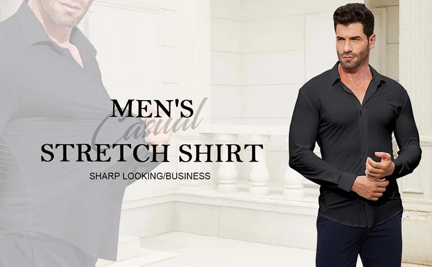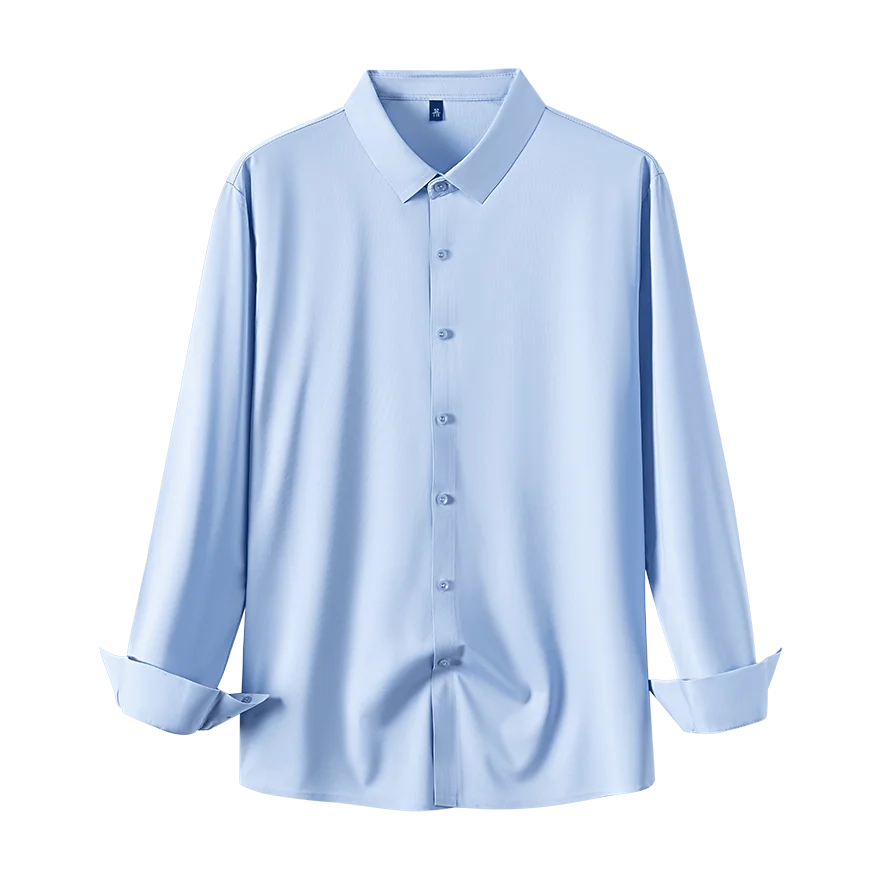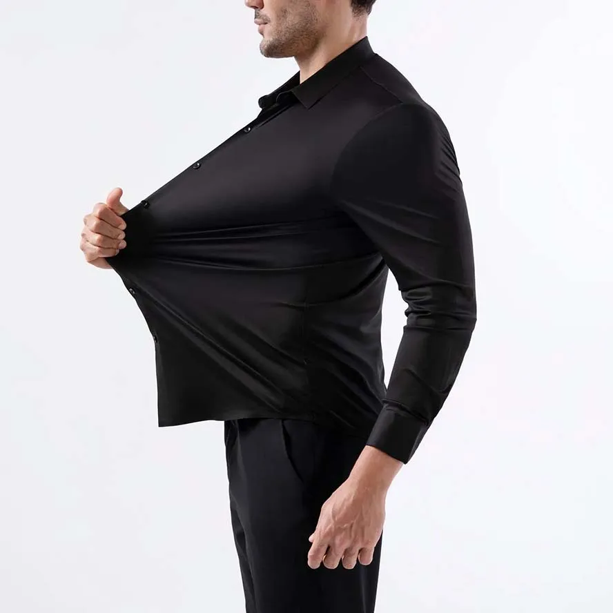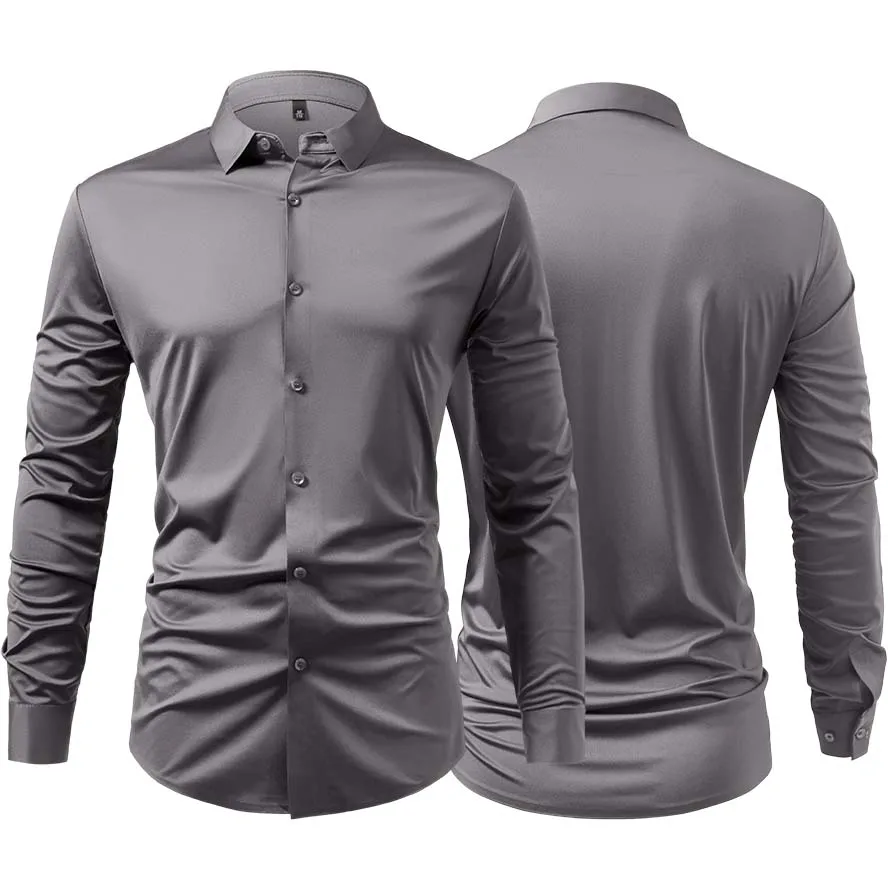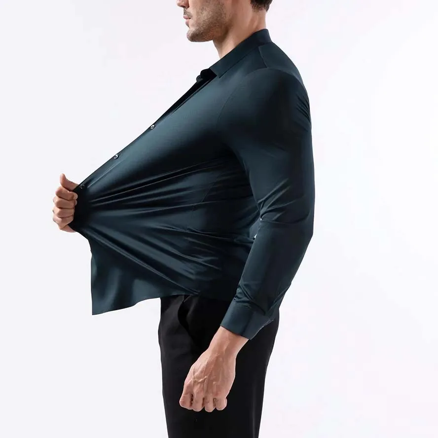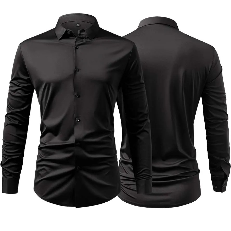 Camisas elásticas de manga larga para hombre, ropa de negocios sin planchar, ropa de trabajo de lujo, camisa con cuello levantado sin arrugas, camisa sólida informal