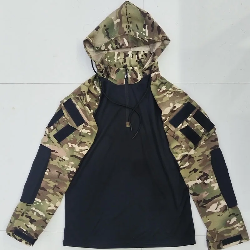 Camisas de entrenamiento Camiseta de combate de camuflaje Camisa táctica con capucha para hombre Ropa de caza de algodón Airsoft Paintball Tops resistentes al desgaste