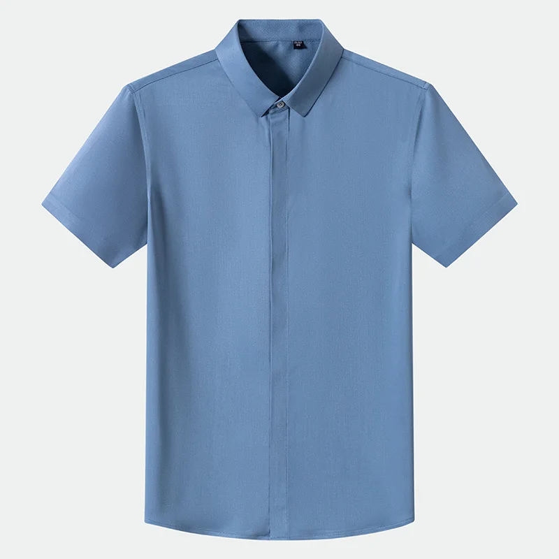 Camisas de negocios de manga corta para hombre, Camisa lisa de seda de morera, transpirable, informal, de alta calidad, a la moda, novedad de verano