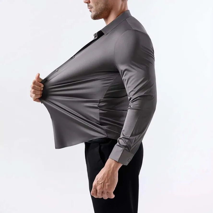 Camisas de negocios sólidas, camisa elástica de 4 vías sin hierro para hombres, Top sedoso sin arrugas, elasticidad, ropa Social, camisas de vestir informales
