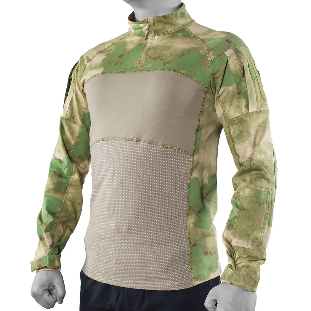 Camisas tácticas Camo 1/4 camisetas transpirables de manga larga Softair camisa Multicam transpirable de secado rápido para exteriores ropa militar para hombres