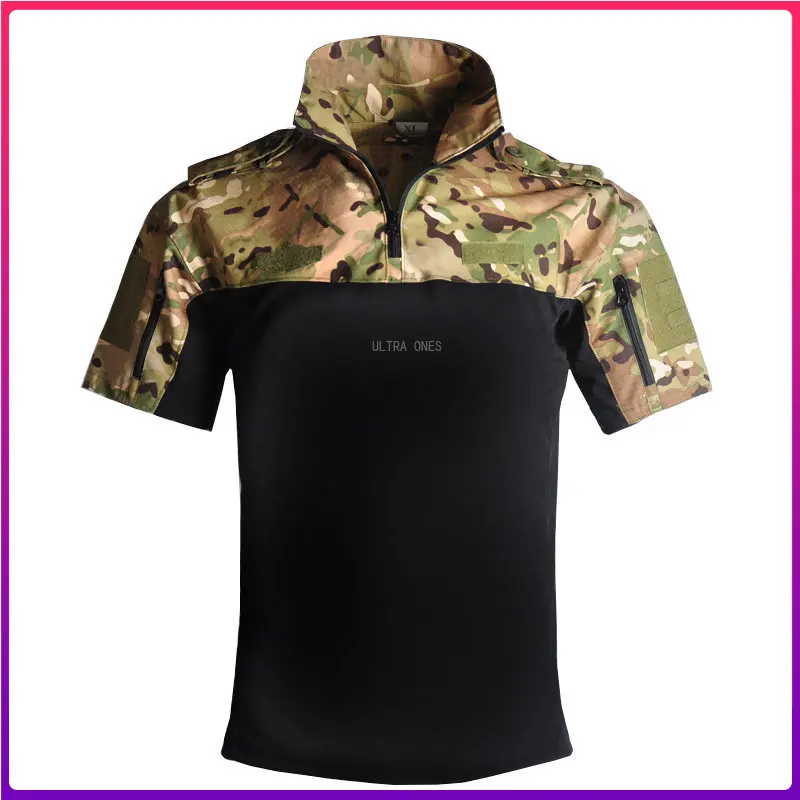 Camisas tácticas de manga corta Airsoft para hombre, camiseta de camuflaje de secado rápido para entrenamiento de combate, ropa transpirable para caza, senderismo y escalada