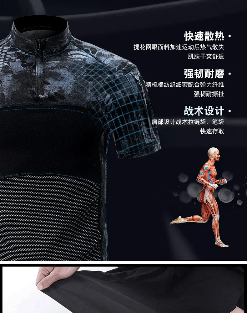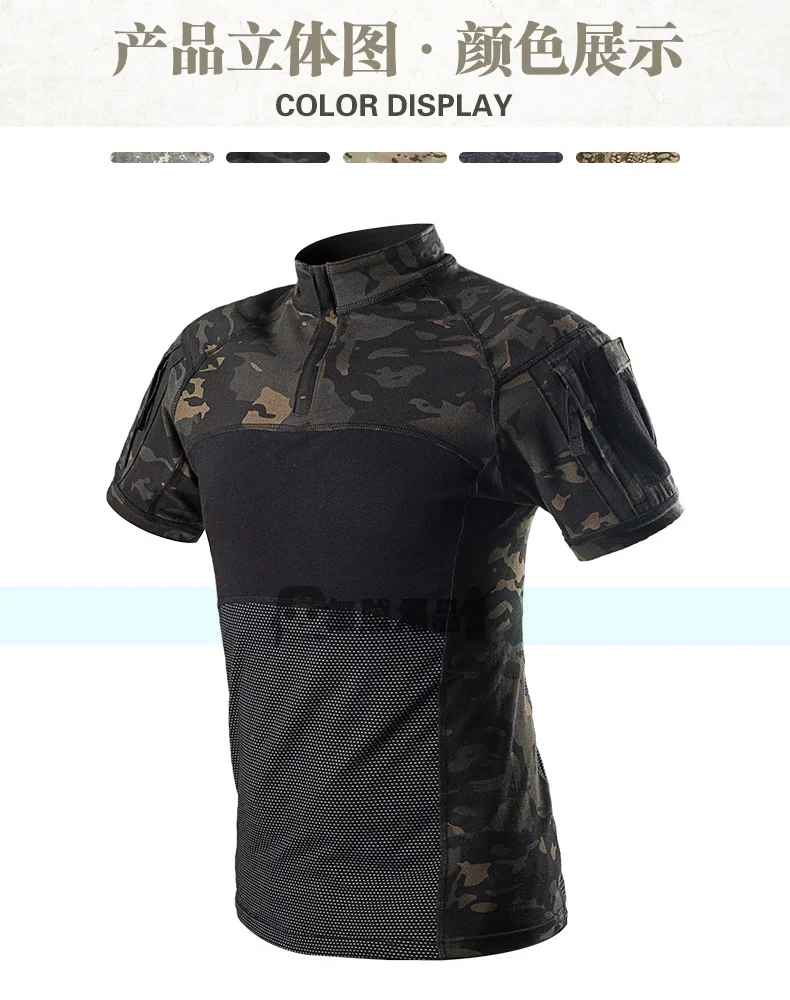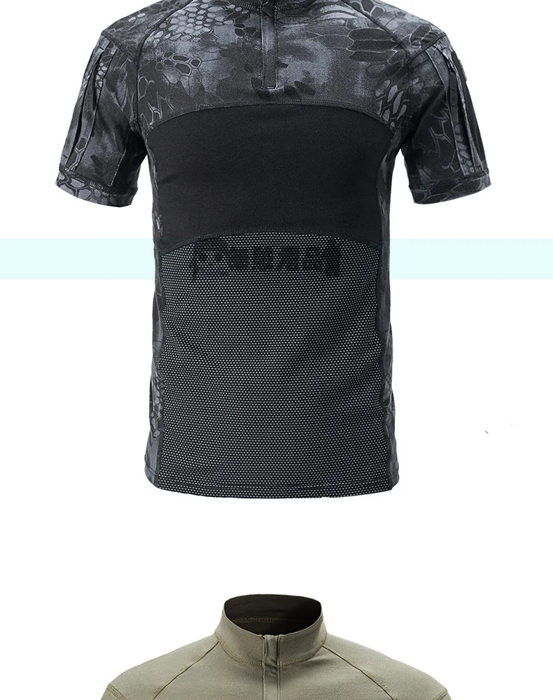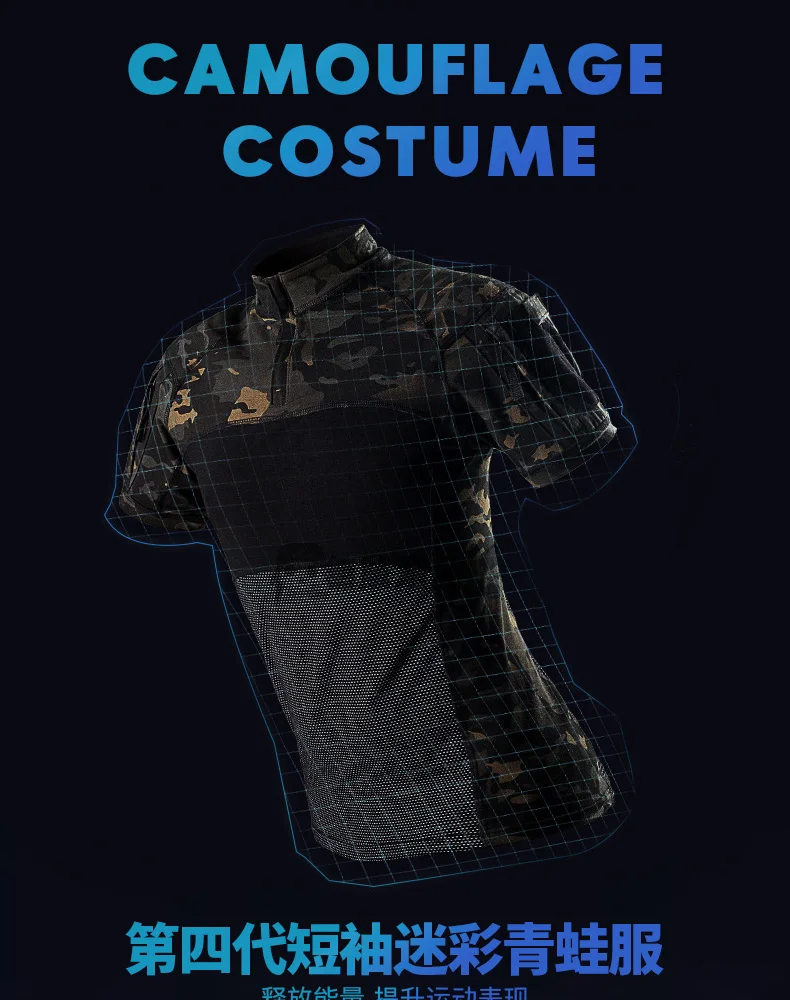 Camiseta de algodón de cuatro generaciones para hombre, Top de manga corta de camuflaje, Pantalón elástico Delgado, traje de entrenamiento militar de rana, Verano