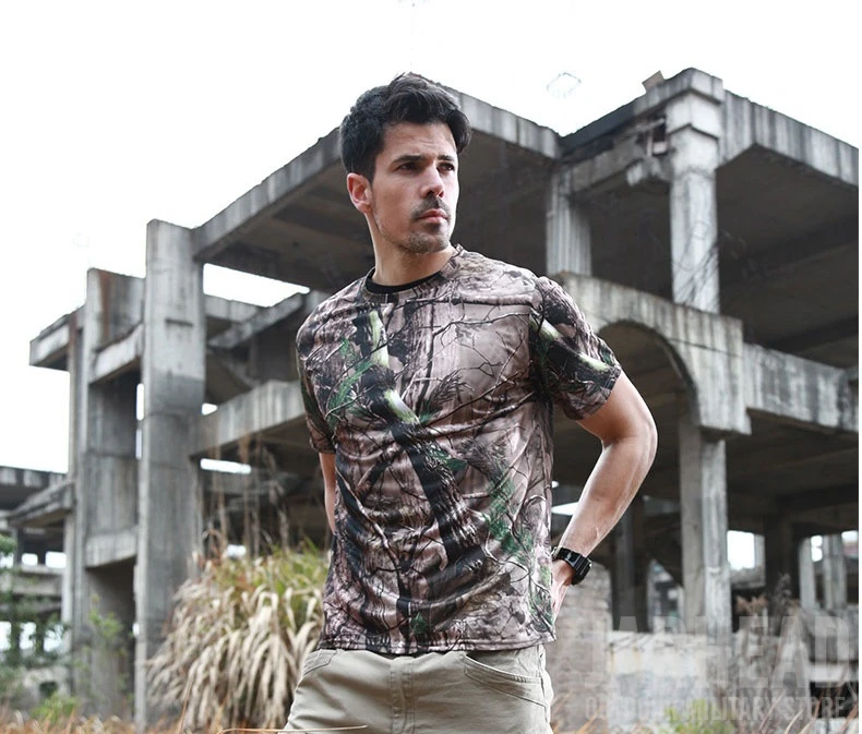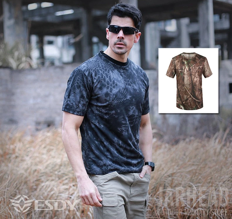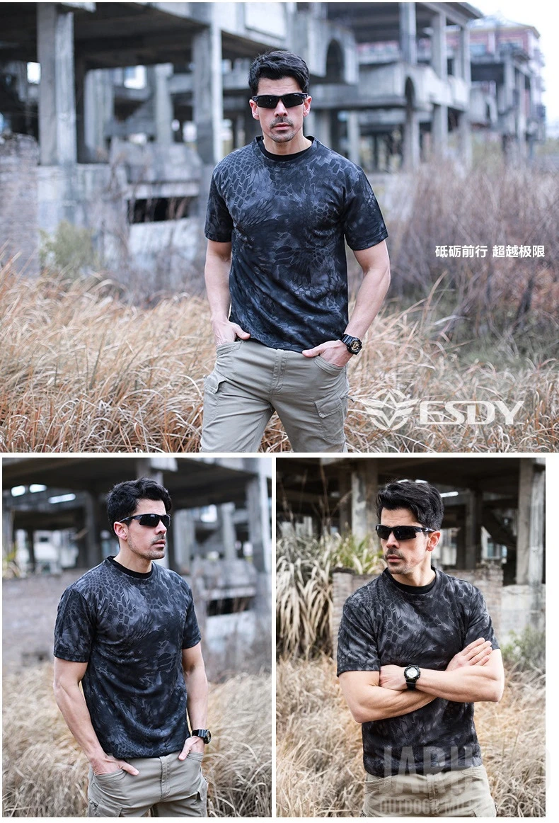 2018 nueva moda de verano al aire libre camisas de camuflaje para hombres o-cuello al aire libre de manga corta Camiseta de secado rápido