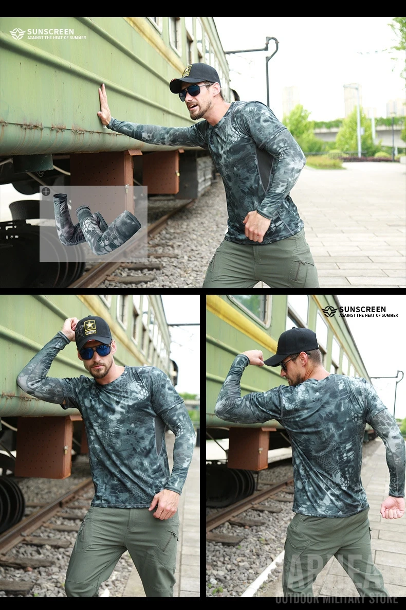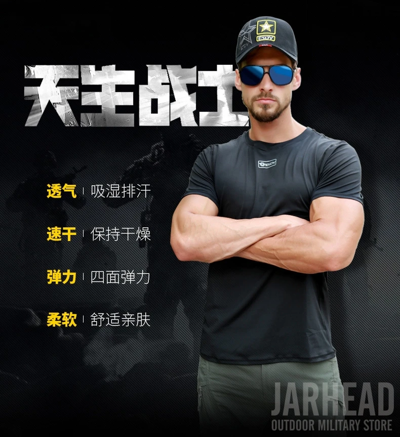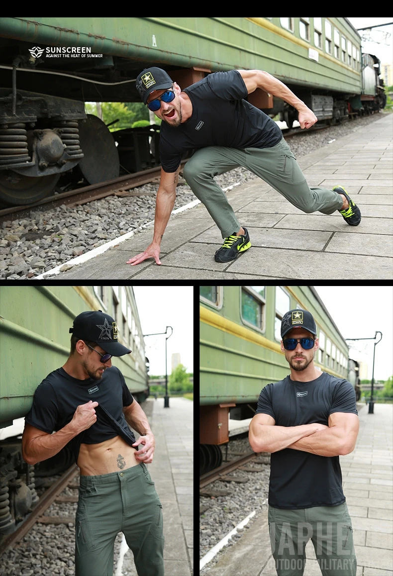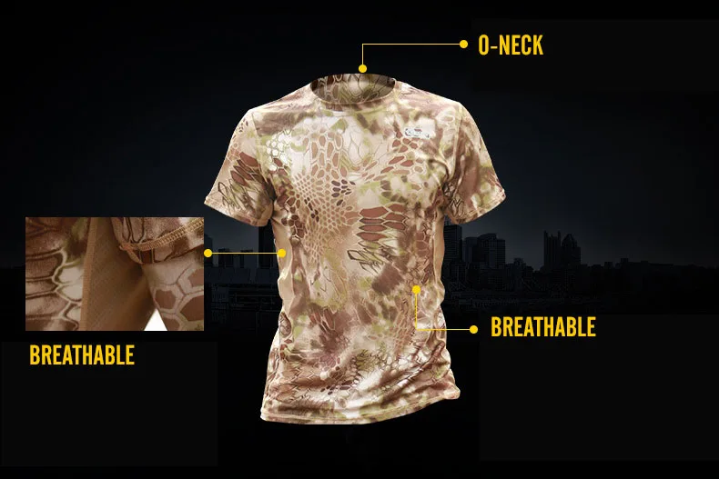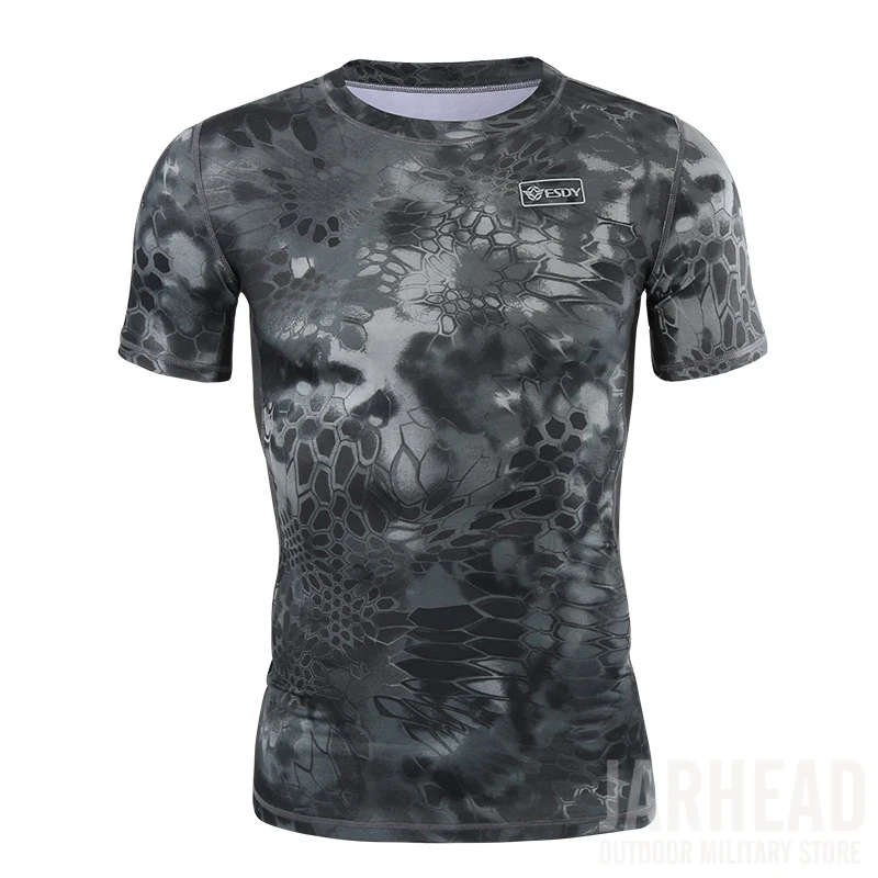 Camiseta de camuflaje militar para hombre, camisa de manga corta de secado rápido para combate táctico del ejército al aire libre, cuello redondo, Verano