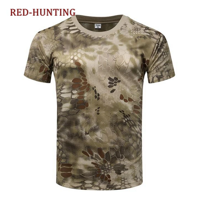 Camiseta de camuflaje para senderismo, camisa de caza de secado rápido para exteriores, camisa de manga corta de camuflaje, Tops tácticos