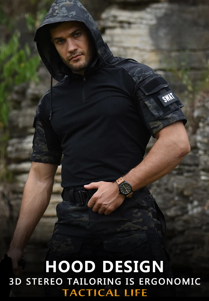 Camiseta de combate del Ejército para hombre, ropa militar táctica, camisa táctica para hombre, ropa táctica de Safari Airsoft, ropa de caza al aire libre