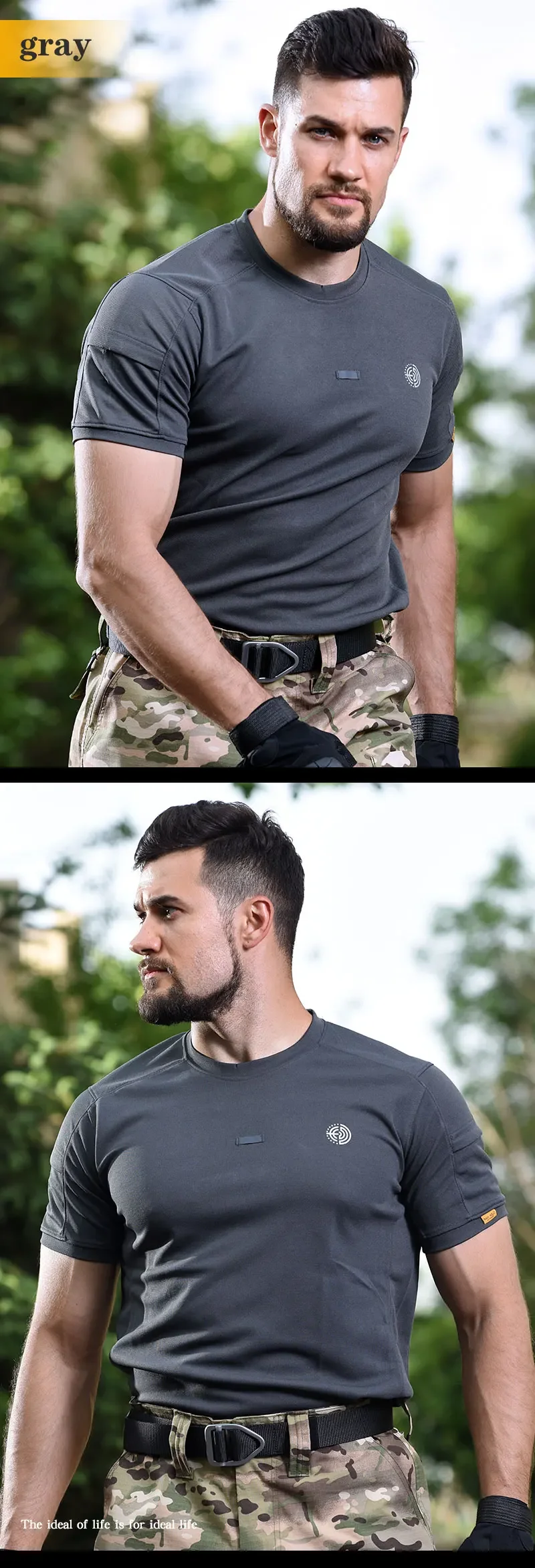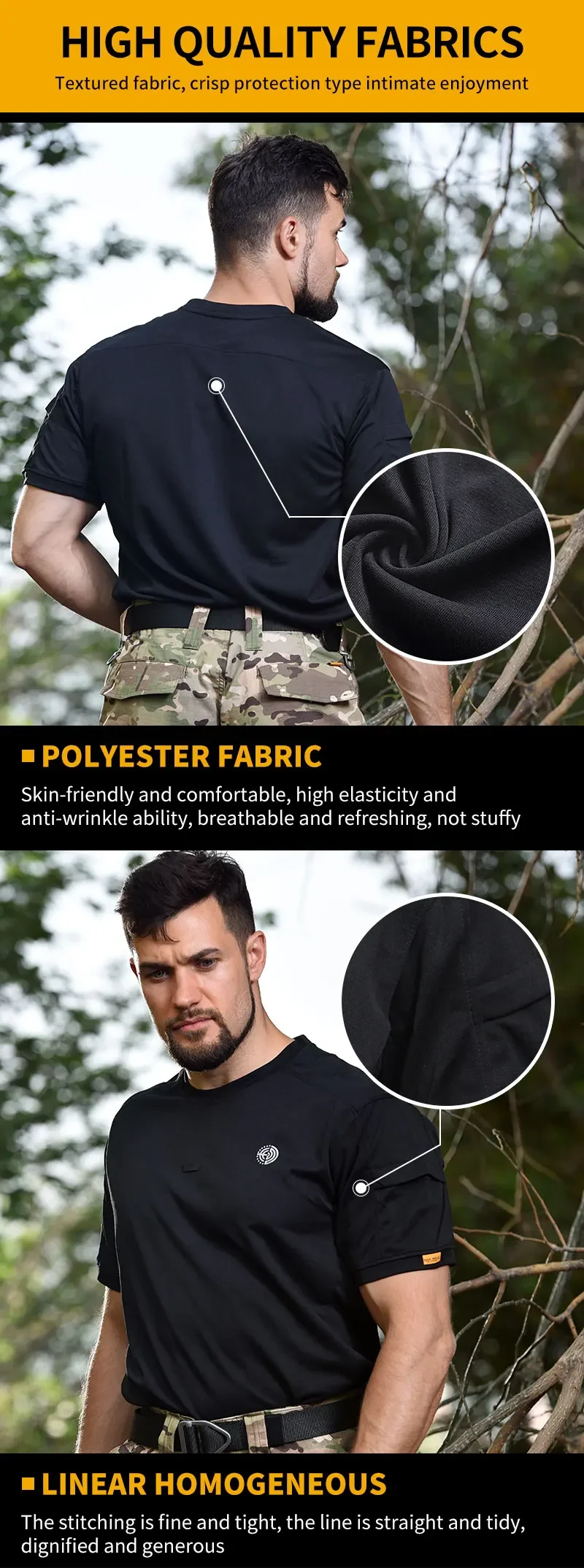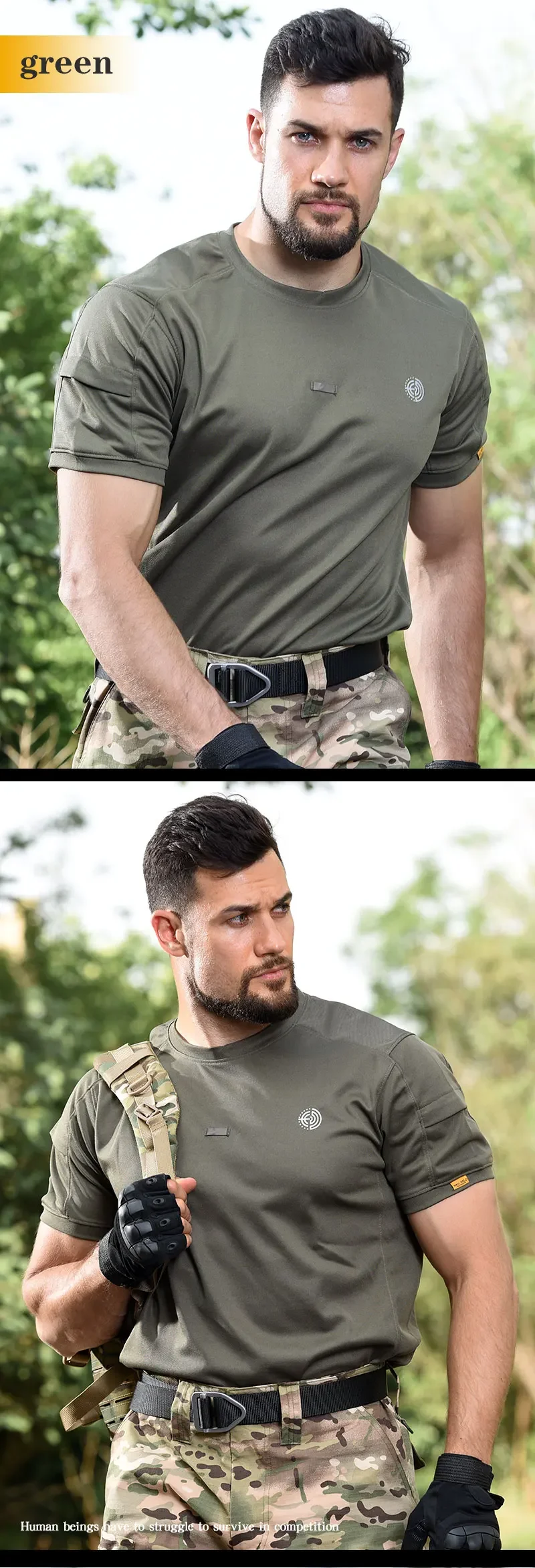 Camiseta deportiva al aire libre, camisas tácticas informales, camisa sólida de verano para hombres, ropa de combate de manga corta de secado rápido para acampar y hacer senderismo