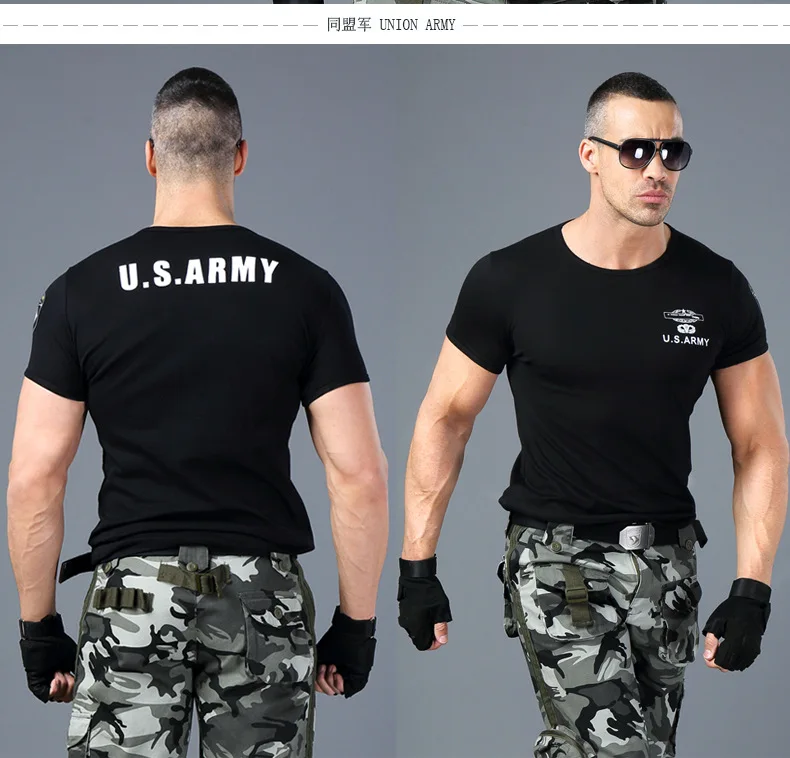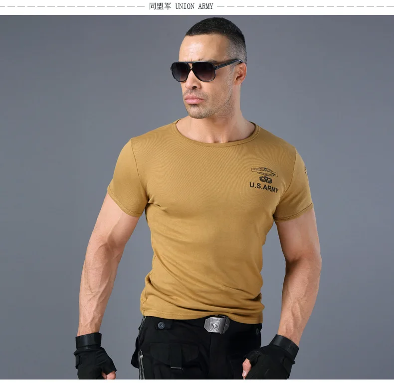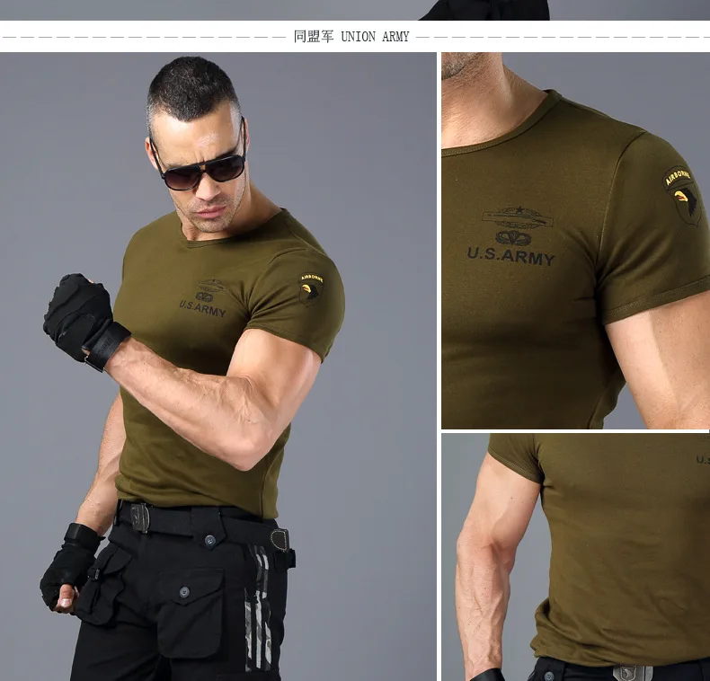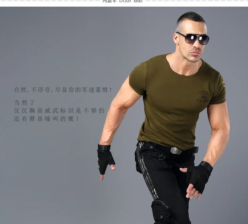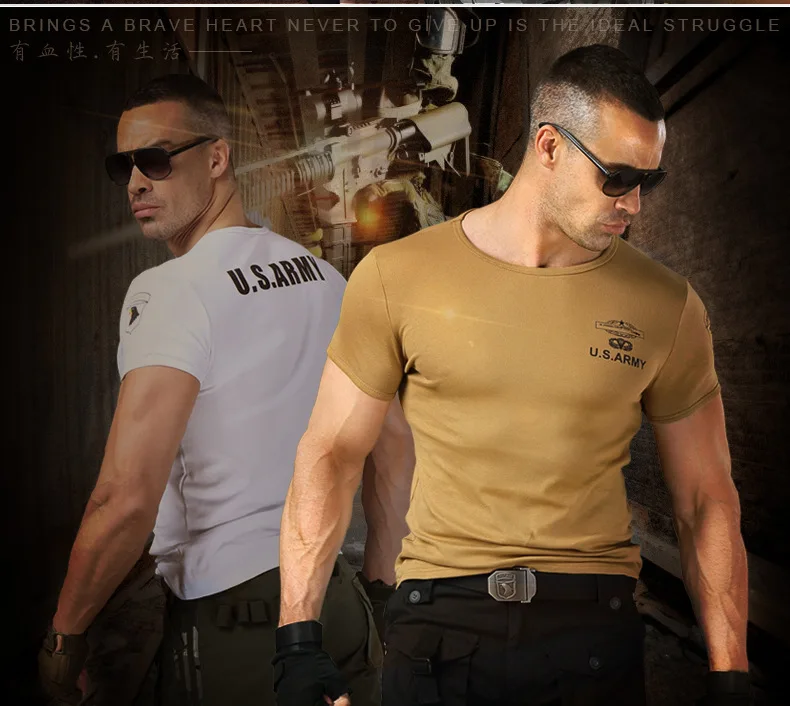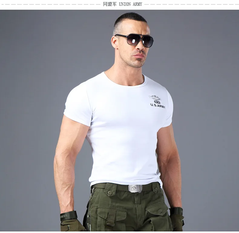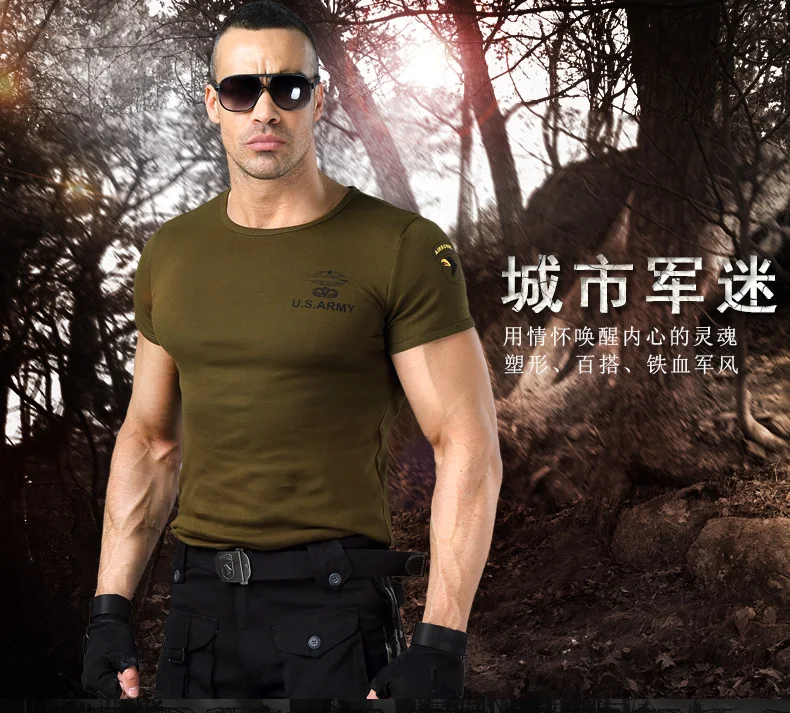 Camiseta de entrenamiento de Fitness ajustada de alto estiramiento para hombres, camiseta de manga corta táctica de verano para fanáticos militares de deportes al aire libre