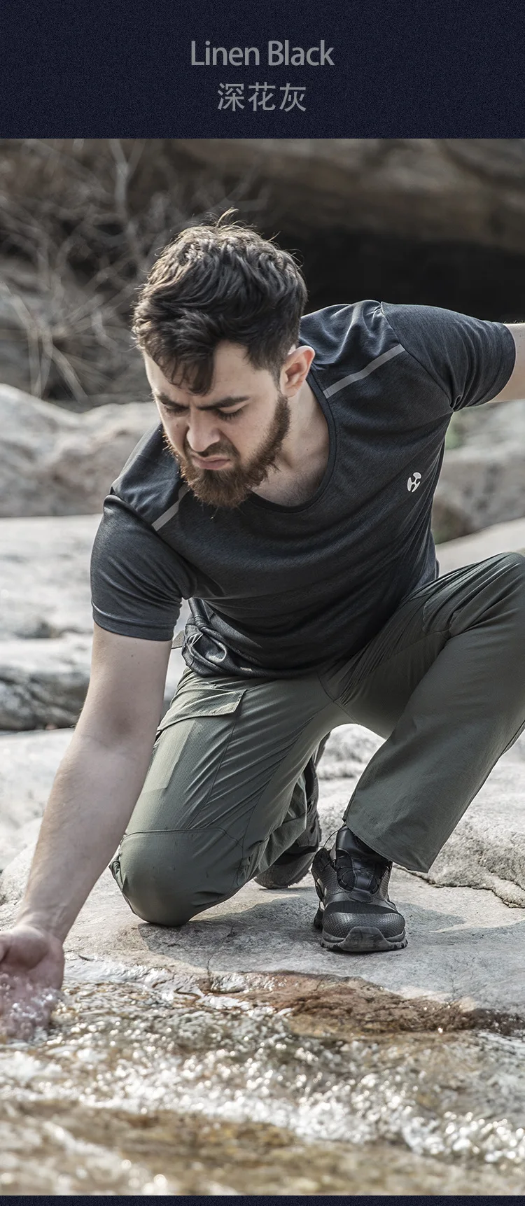 Camiseta fina de secado rápido para hombre, camisa de manga corta transpirable elástica para entrenamiento, senderismo y Fitness, deportes al aire libre, Verano