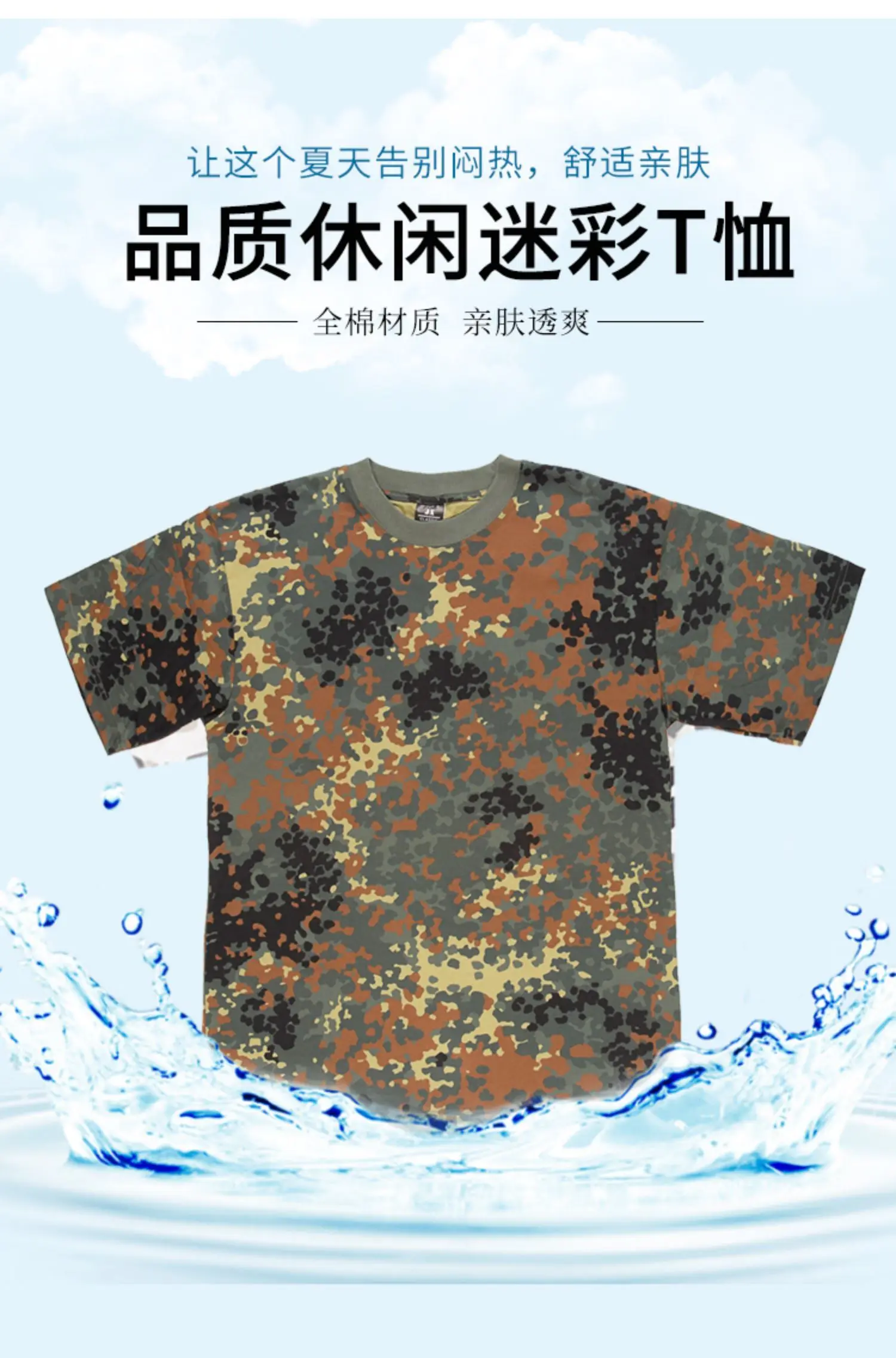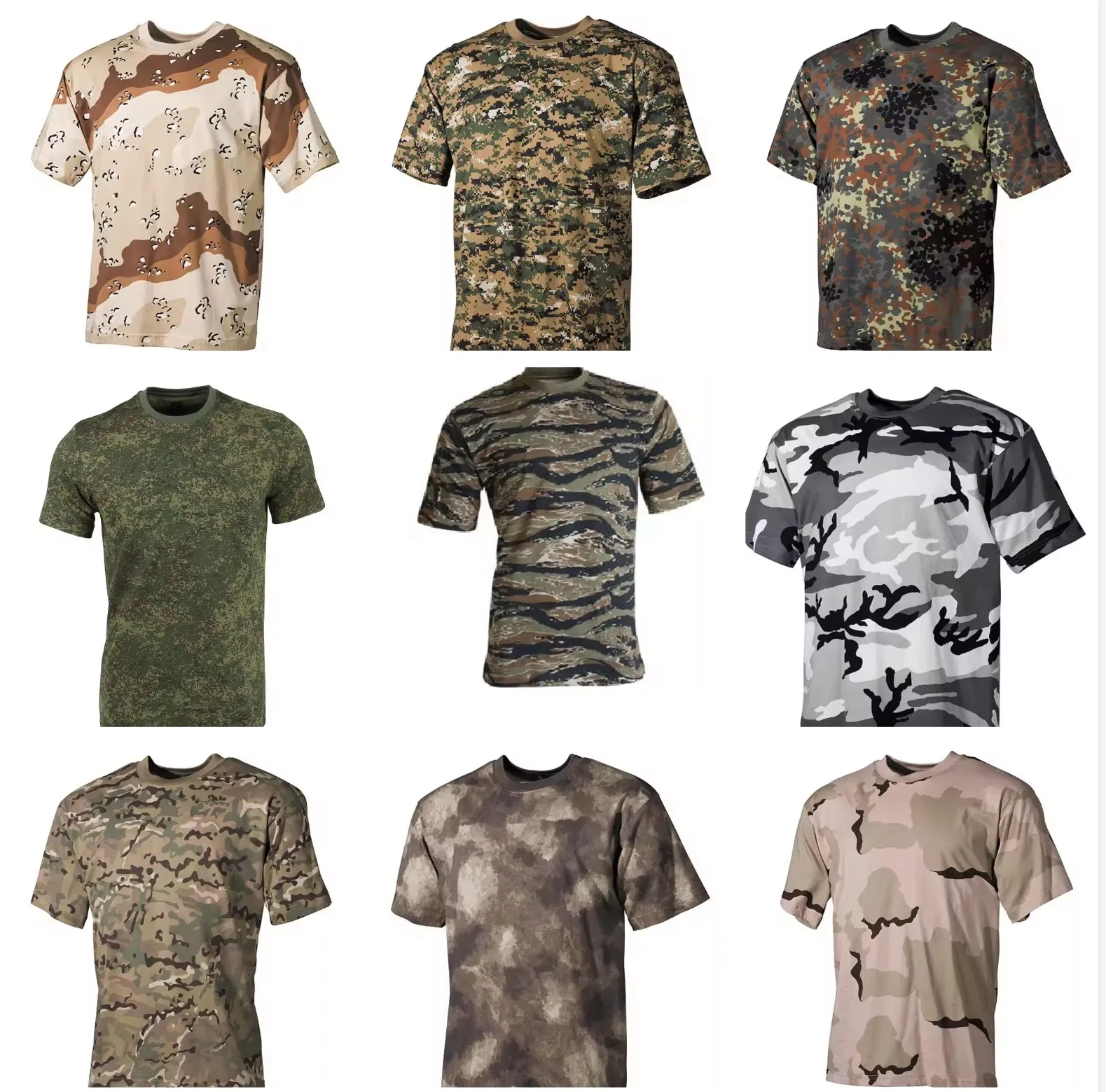Camiseta de manga corta de camuflaje táctico para hombre, algodón deportivo, cuello redondo, talla grande, holgada, para exteriores, informal, transpirable