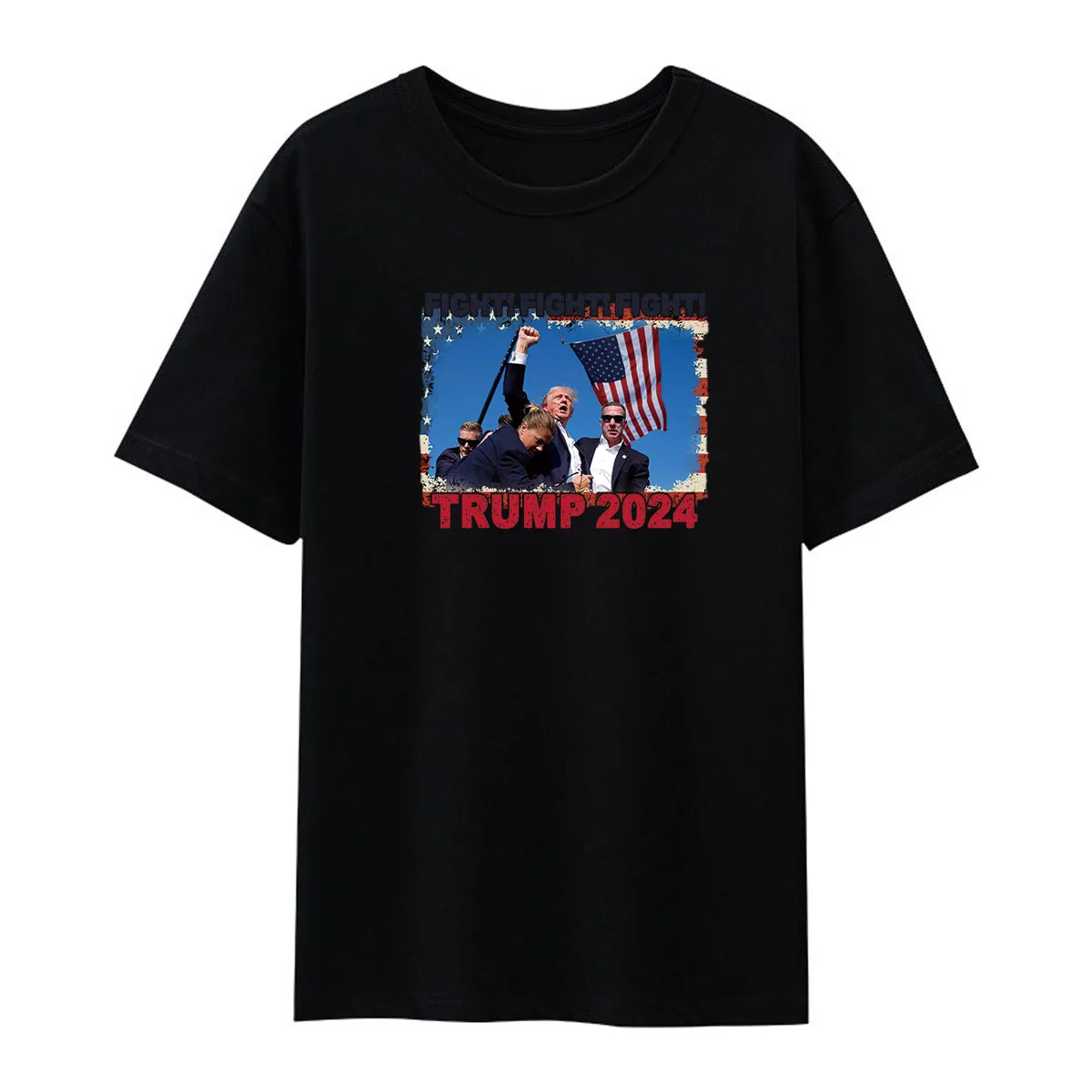 Camiseta de manga corta con la bandera americana, camisa informal de Donald Trump, con la espalda de América, patriótica, 2024