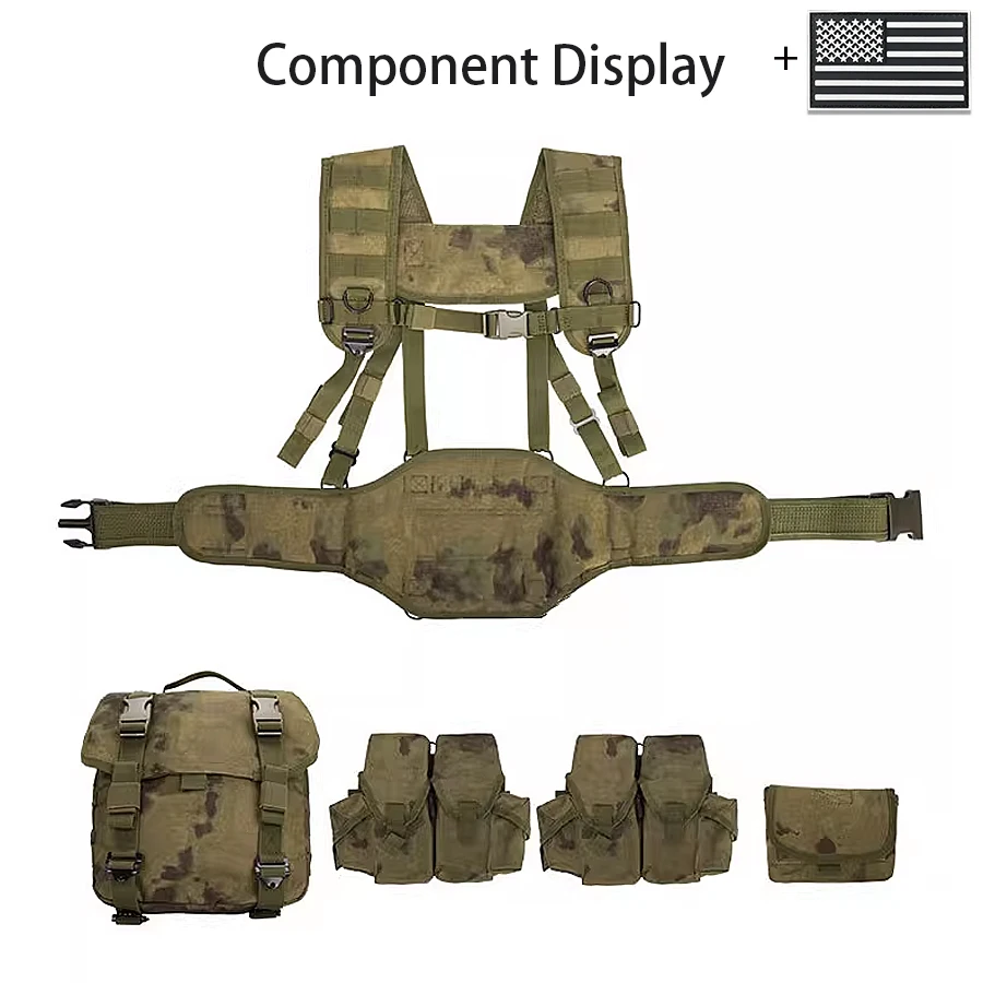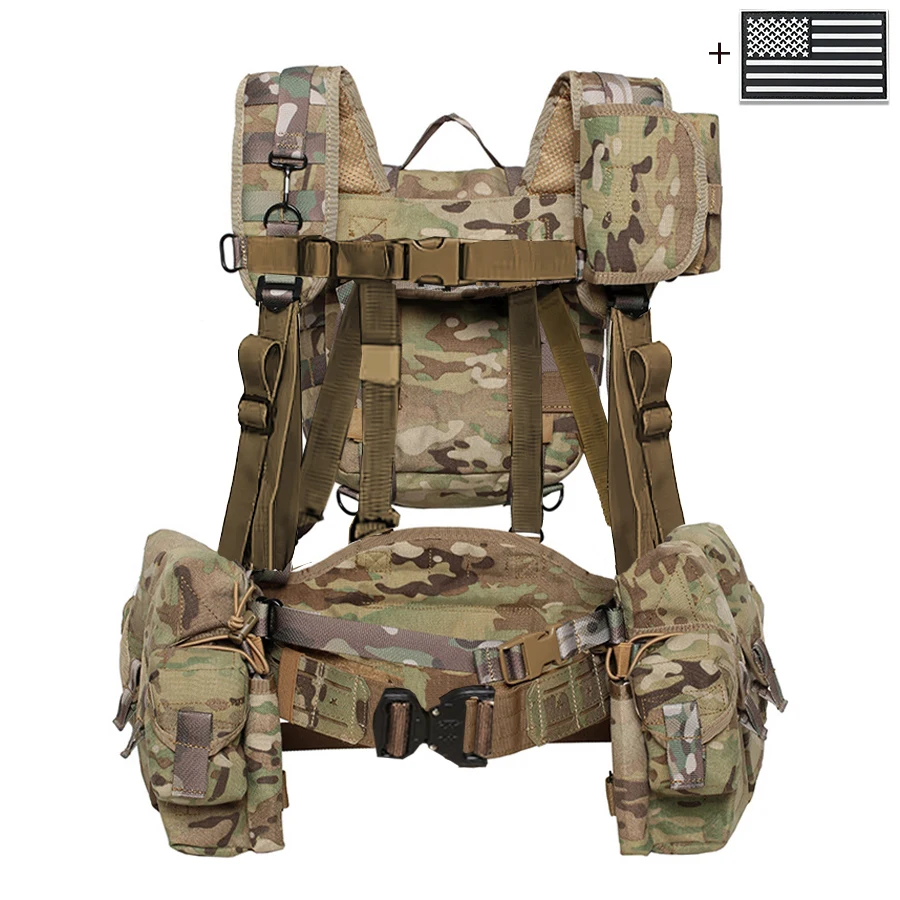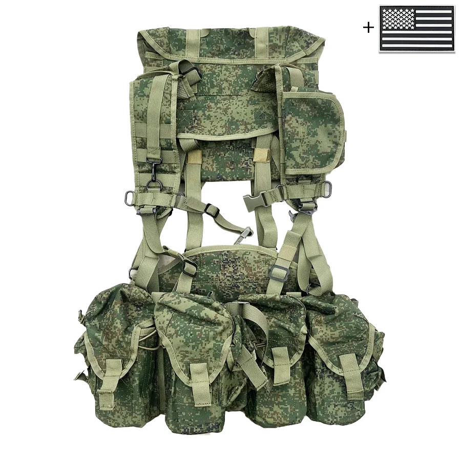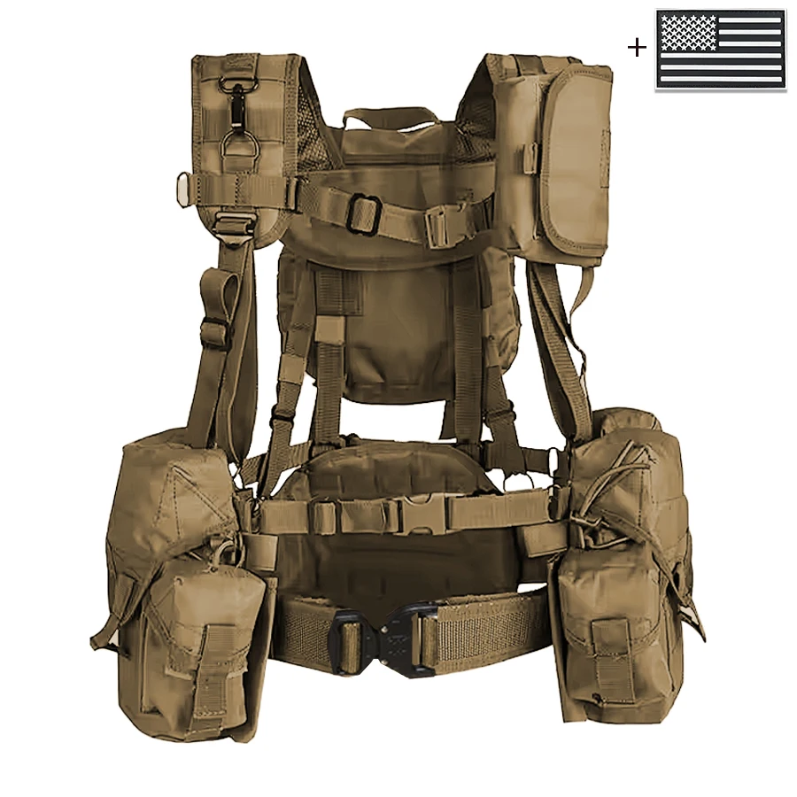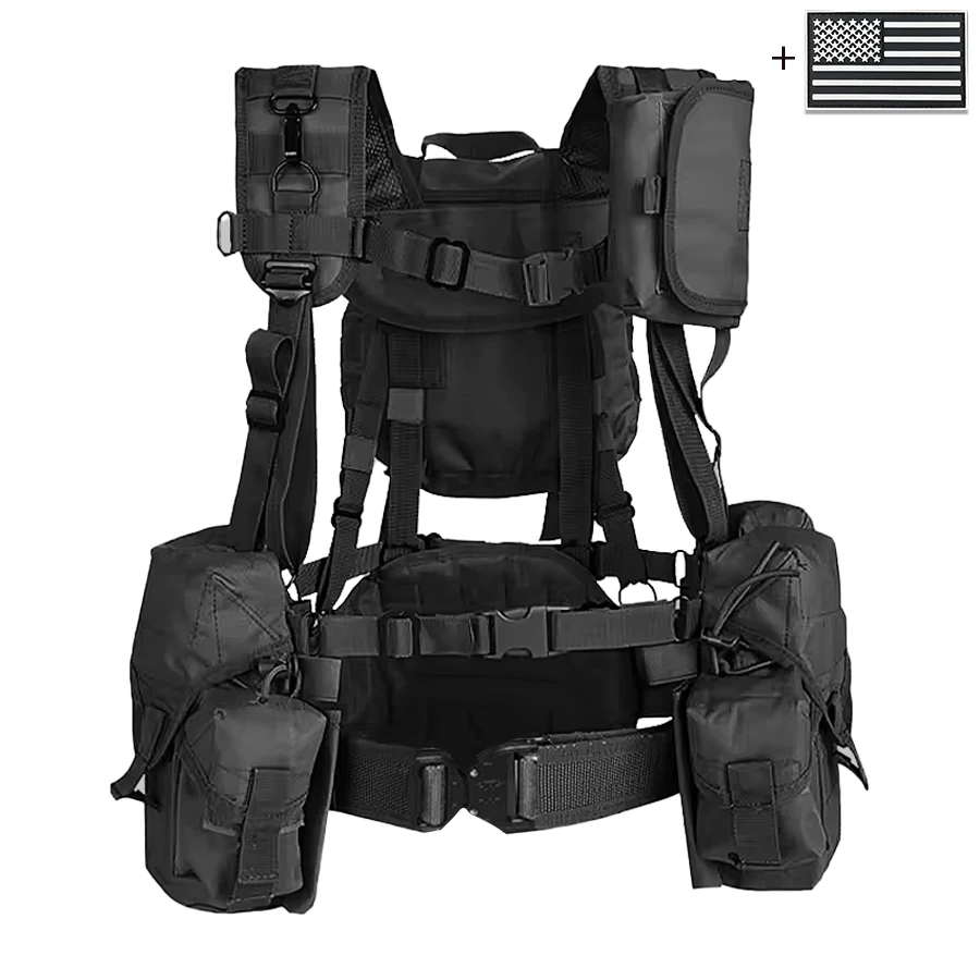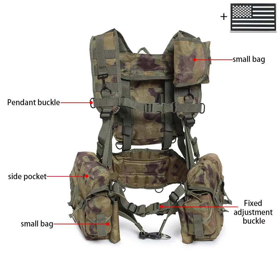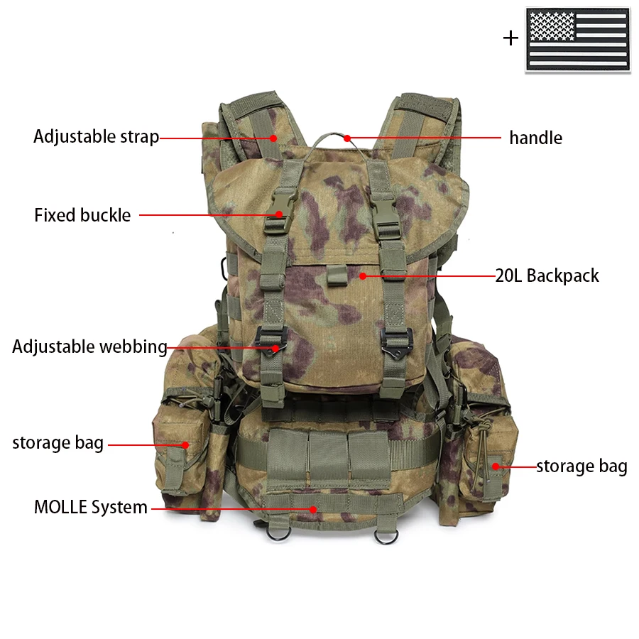 Camiseta sin mangas de camuflaje con sistema MOLLE, camiseta sin mangas con bolsillo para liberación rápida de equipo de caza al aire libre + parche de bandera de EE. UU.