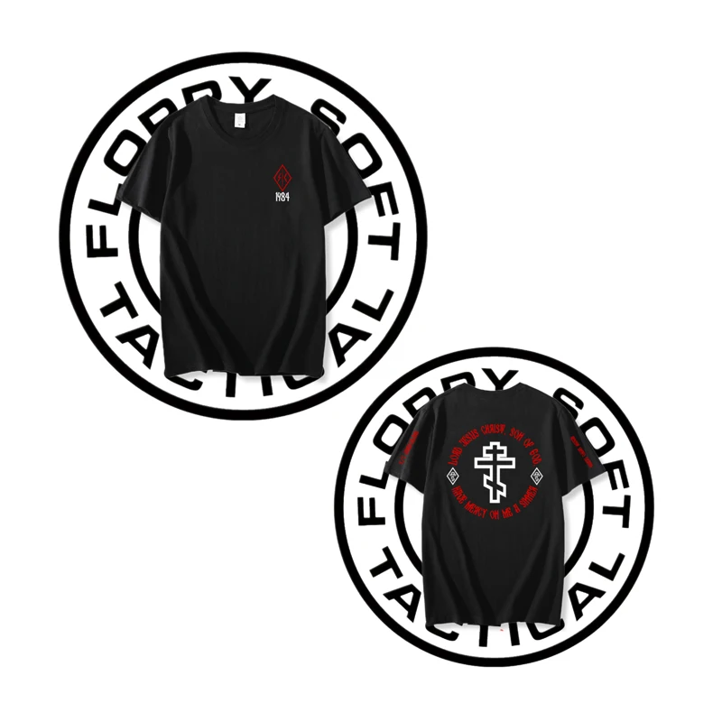 Camiseta de oración estampada irregular de gran tamaño de manga corta negra de manga corta