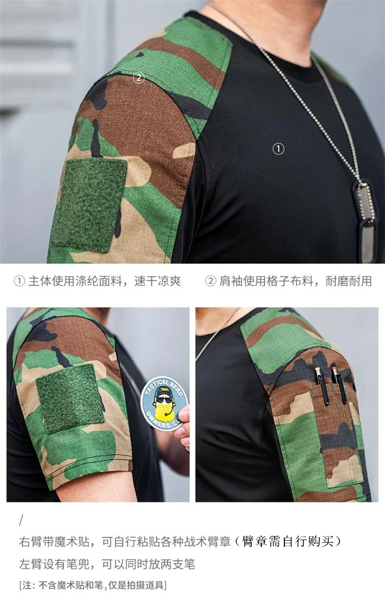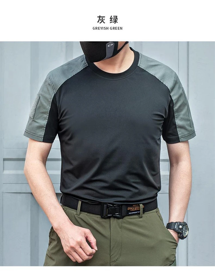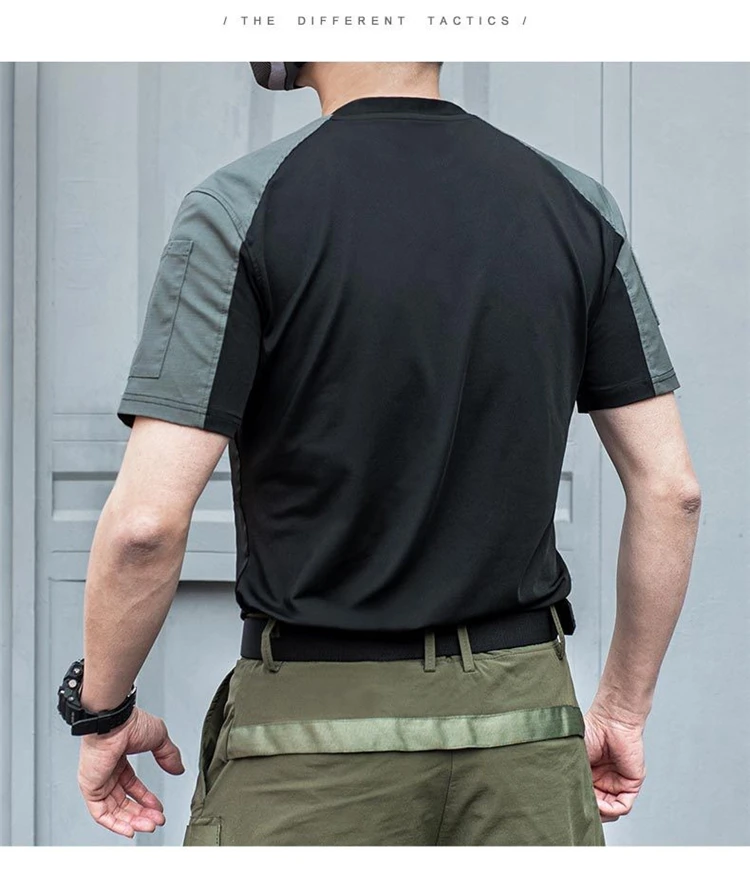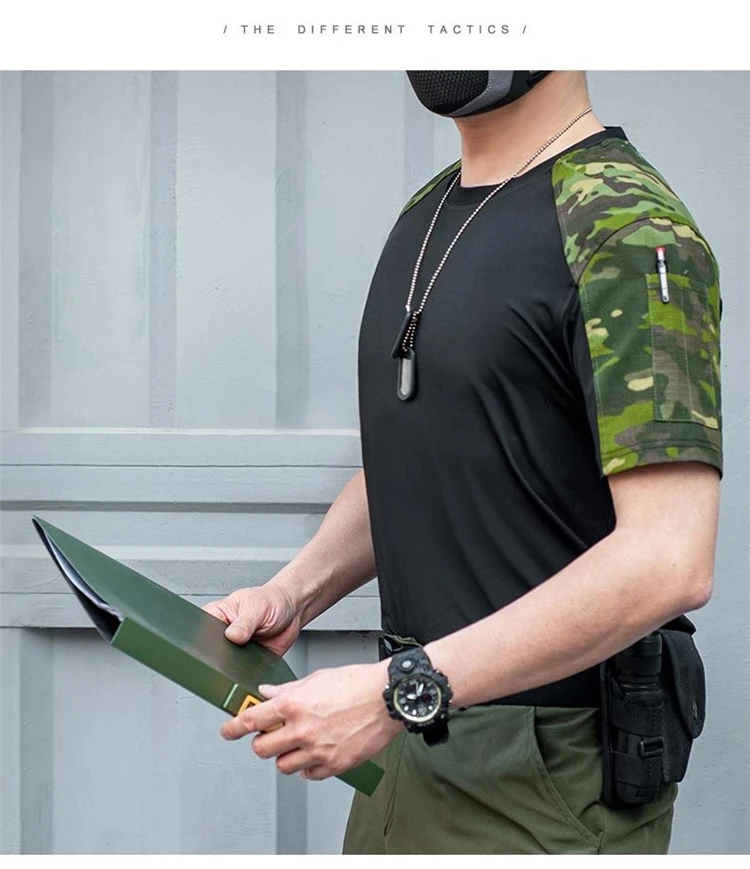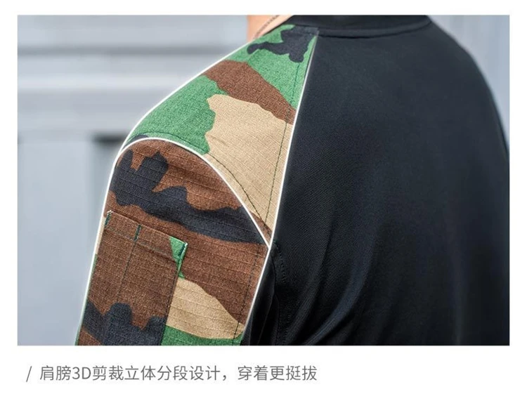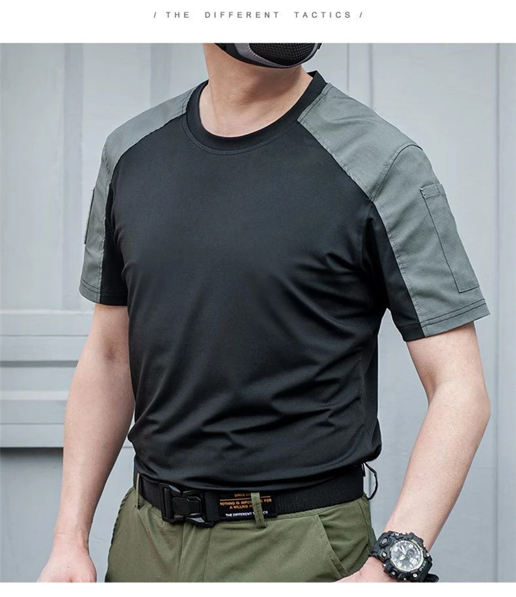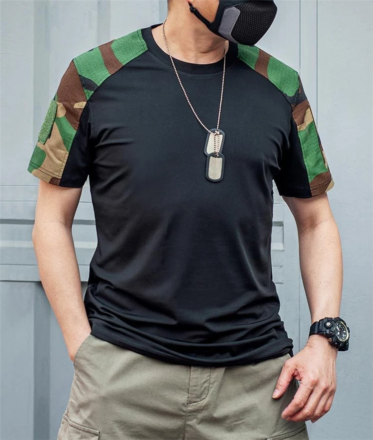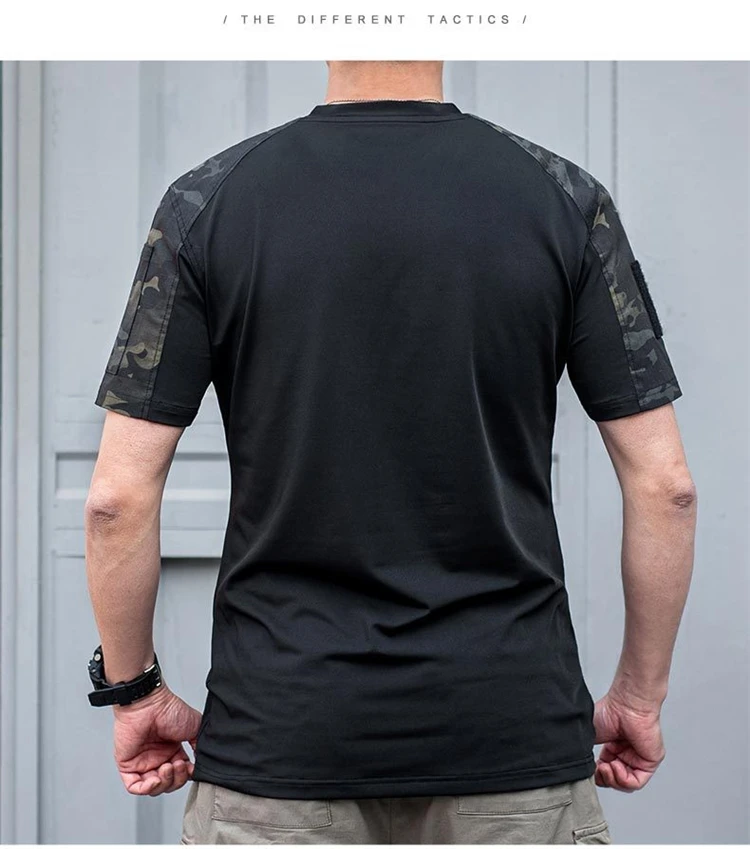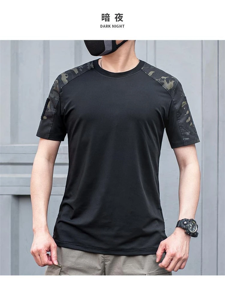 Camiseta táctica de cuello redondo para hombre, camisa de manga corta de secado rápido para exteriores, Color camuflaje, empalme de colisión, secado rápido