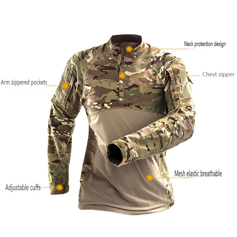 Camiseta táctica de malla para hombre, camiseta de camuflaje de manga larga con cremallera, rana de asalto, escalada al aire libre, uniforme de senderismo, camisa para fiesta de graduación y Club, genial