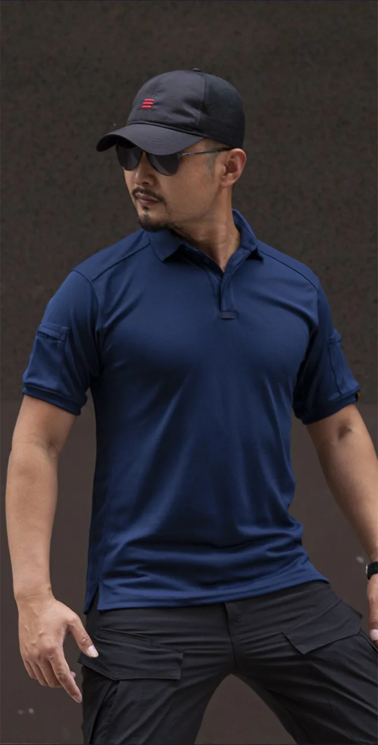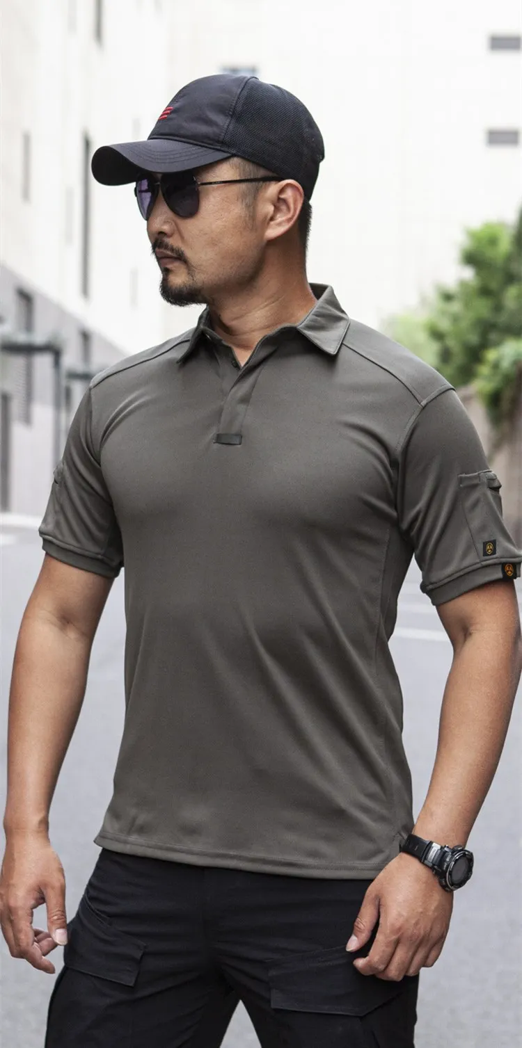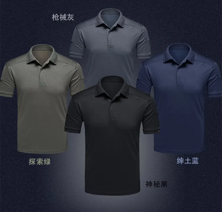 Camiseta táctica de secado rápido al aire libre para hombre, camisa de manga corta con solapa transpirable fina de verano, Tops, Camiseta deportiva militar para fanáticos del ejército