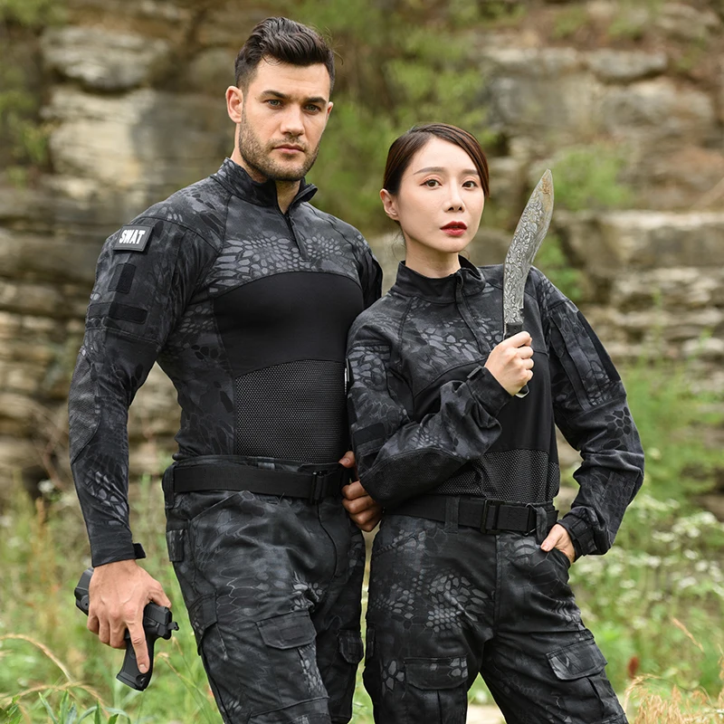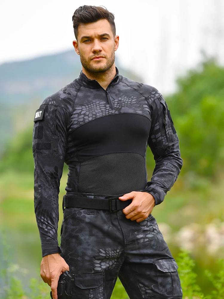 Camisetas de algodón de caza de entrenamiento táctico, camiseta Ripstop transpirable fácil de lavar, camisetas de Camping de Paintball AirsoftMaterial: 95% Algodón + 5% poliéster
