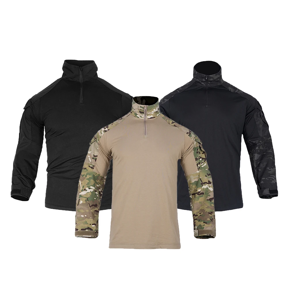 Camisetas de manga larga de camuflaje de combate para hombre, camisa táctica para exteriores, senderismo, caza, escalada, ropa deportiva de algodón