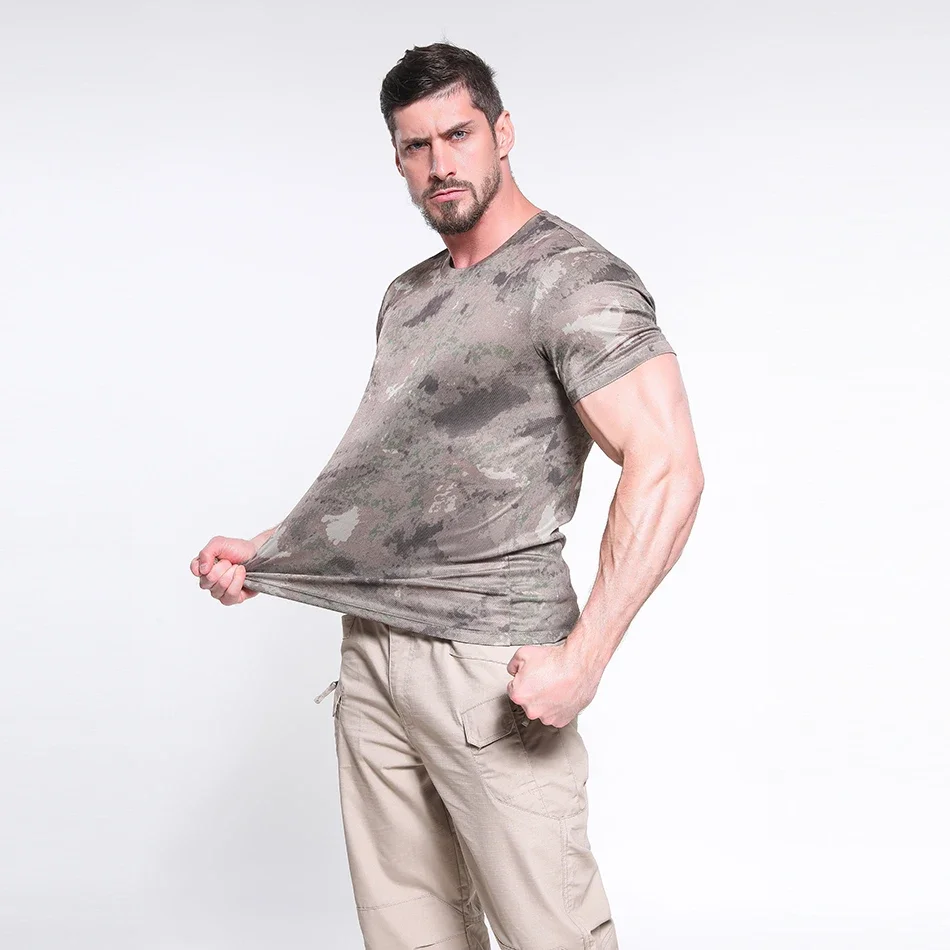 Camisetas de secado rápido para hombre, Tops de Fitness al aire libre, entrenamiento de gimnasio, camiseta de camuflaje del Ejército de EE. UU., ropa deportiva informal transpirable, nuevo