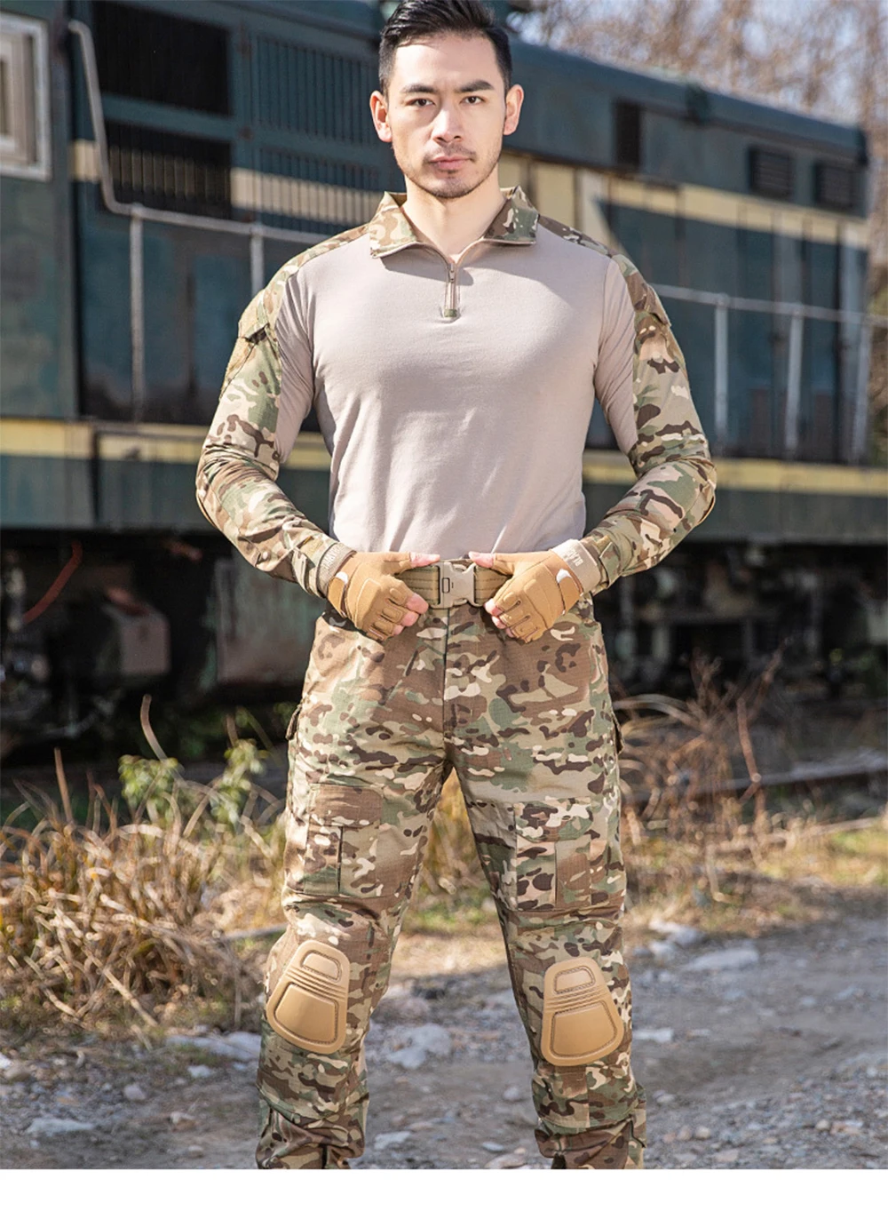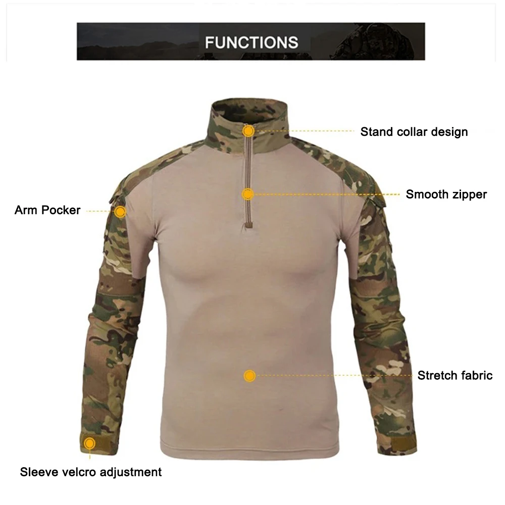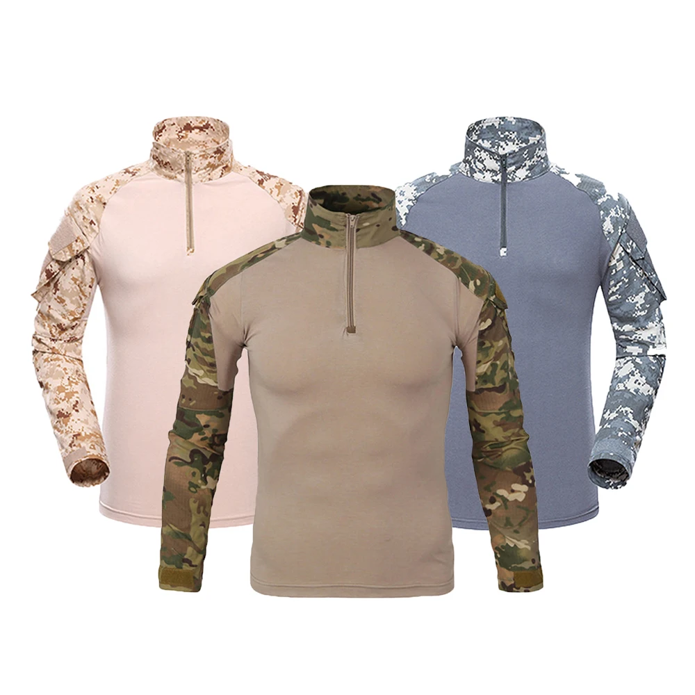 Camisetas de senderismo de entrenamiento táctico al aire libre para hombre, camisa de escalada de manga larga de camuflaje de caza, ropa deportiva transpirable