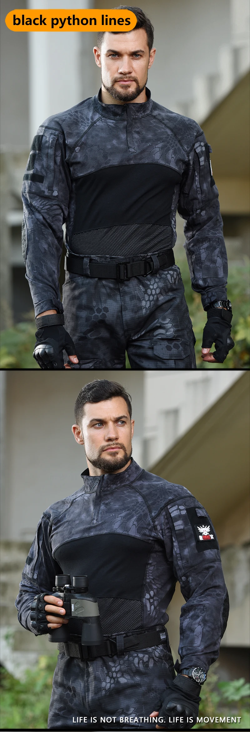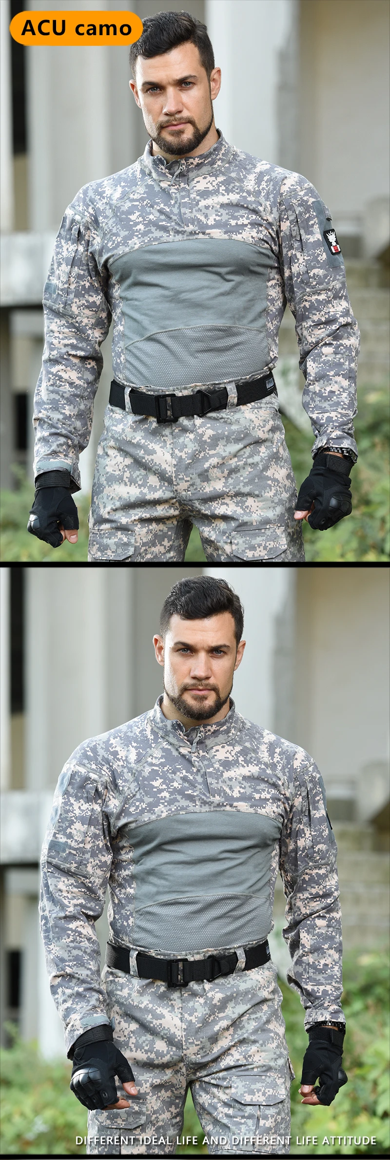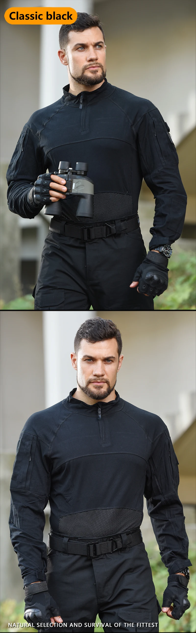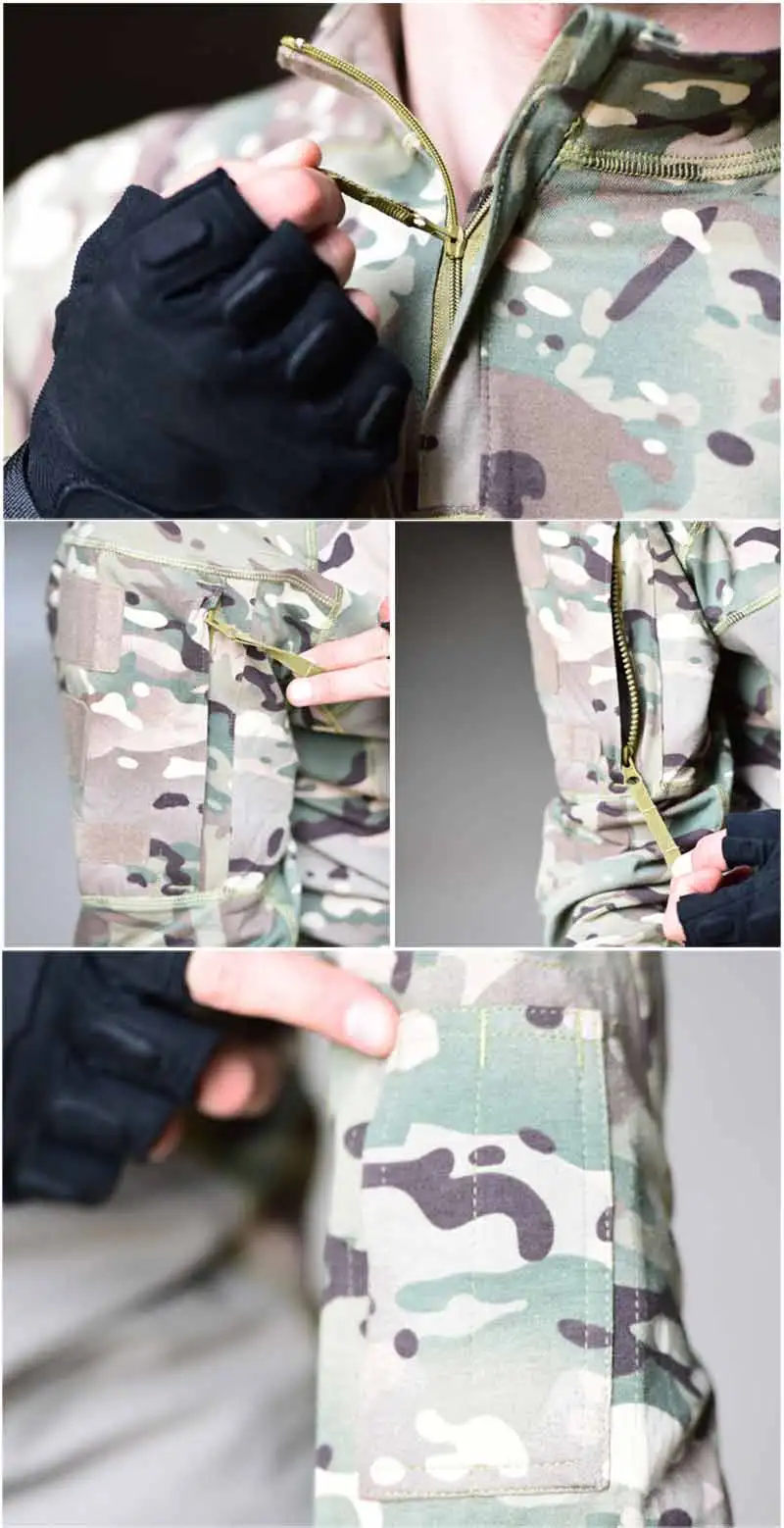 Características:1: Puños ajustables con cierre de gancho y bucle3: 2 bolsillos con cremallera en las mangas, con 1 bolsillo para lápices en los brazos4: Tejido muy elástico, súper suave/transpirable6: Tejido de secado rápido/fácil de lavar, sin decoloración.7: tejido de codo de doble capa + partícula de silicona antideslizante8: Transpirable para la parte del cuerpo9: Doble costura, más fuerte