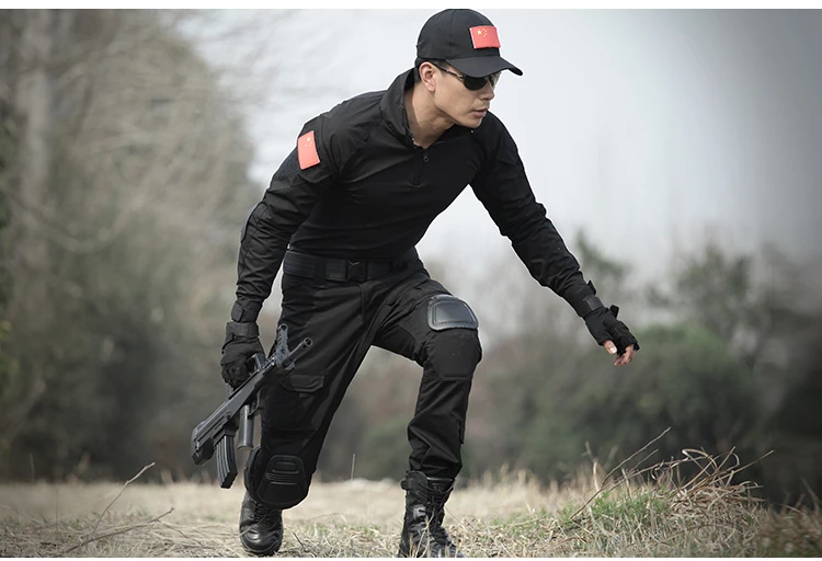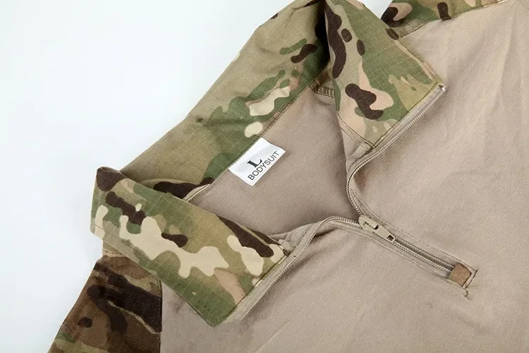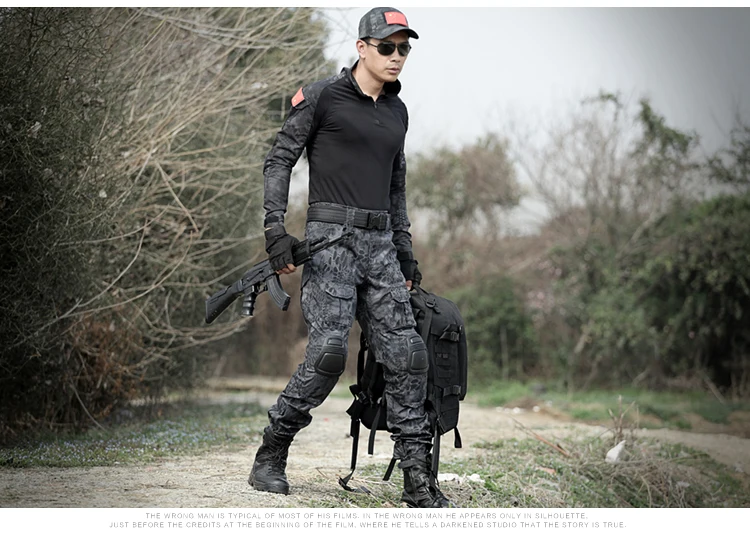 Camisetas tácticas para senderismo al aire libre para hombre, camisa de escalada de caza de manga larga de camuflaje militar CP de combate, ropa deportiva de algodón