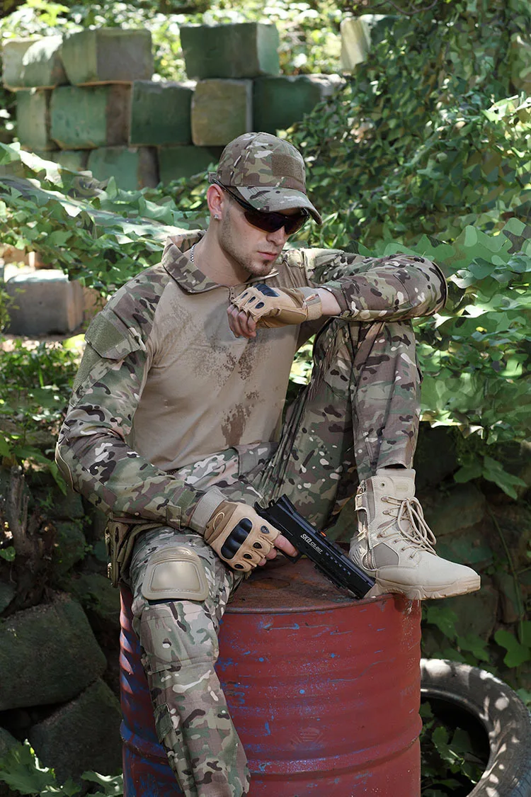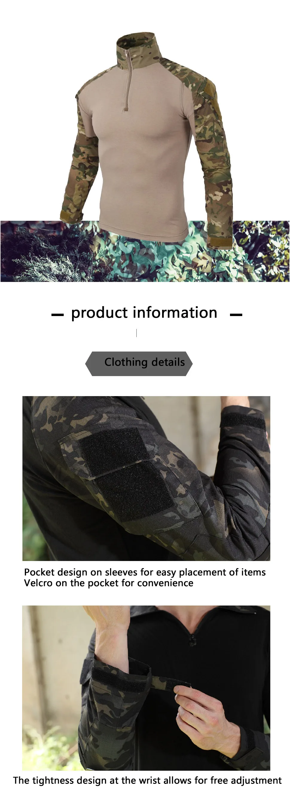 Camisetas tácticas para senderismo al aire libre para hombre, camisa de escalada de caza de manga larga de camuflaje militar CP de combate, ropa deportiva de algodón