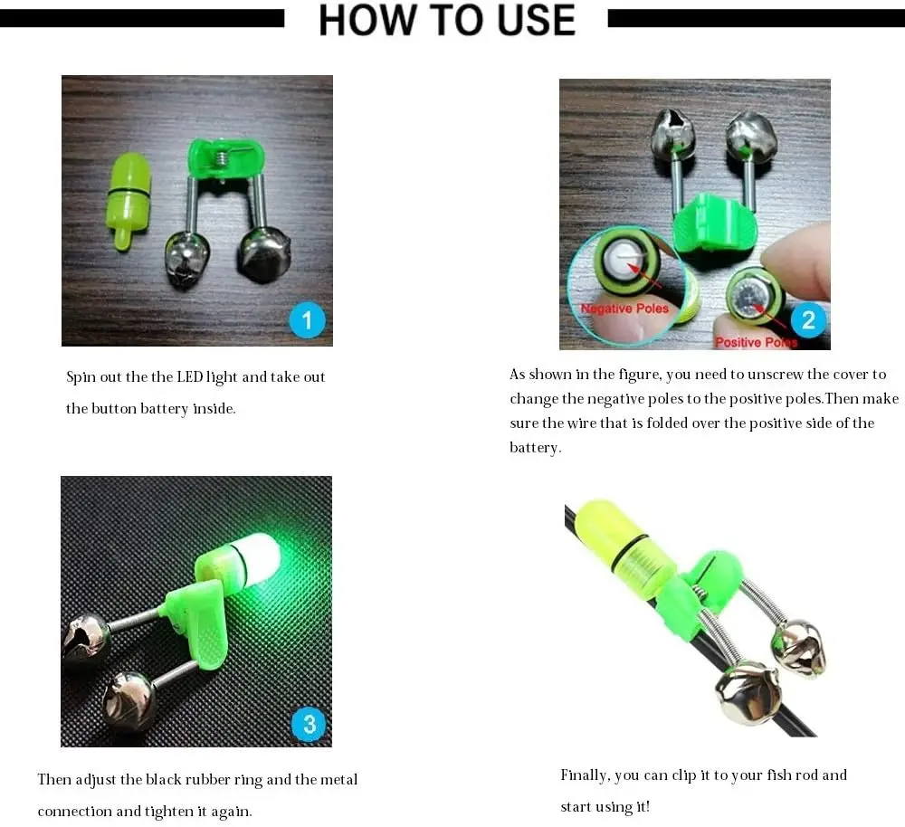 1. 【Perfecto para la pesca nocturna】 Hechos de clip de plástico y cascabeles de metal dobles, están unidos mediante un resorte que están claquetados de forma segura y no se caerán.Perfecto para pescadores profesionales y amantes de la pesca para la pesca nocturna, la pesca nocturna en el mar, la pesca nocturna en lagos y los torneos de pesca.