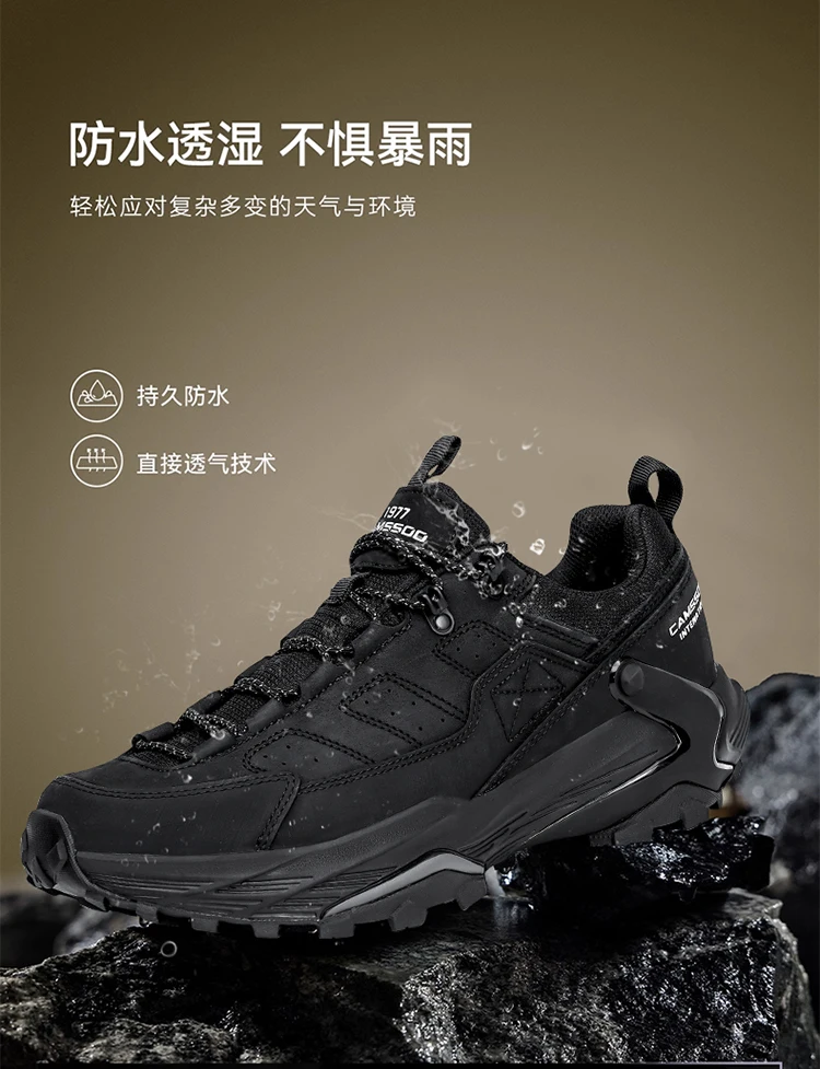 CAMSSOO Botas de senderismo de cuero de vaca, zapatos de caza impermeables para hombre, zapatos de viaje, zapatillas de deporte informales para escalar al tobillo