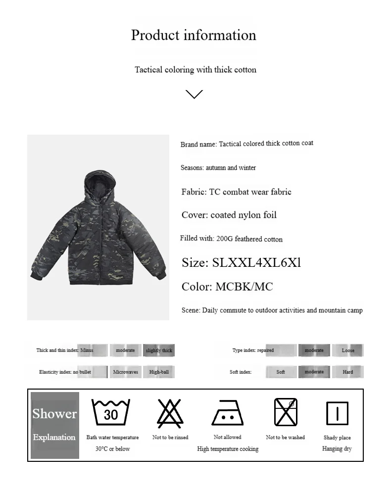 Camuflaje abajo algodón Otoño Invierno resistente al desgaste cálido chaqueta al aire libre función táctica