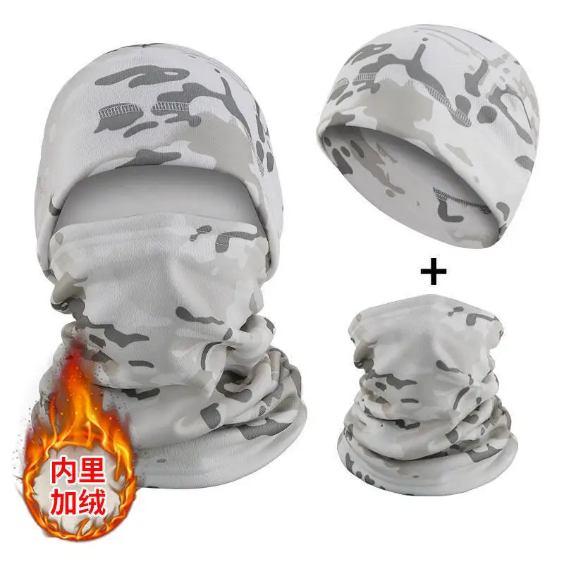 Camuflaje de invierno con gorro de felpa, bufanda gruesa, gorro cálido para ciclismo al aire libre, funda para casco resistente al frío